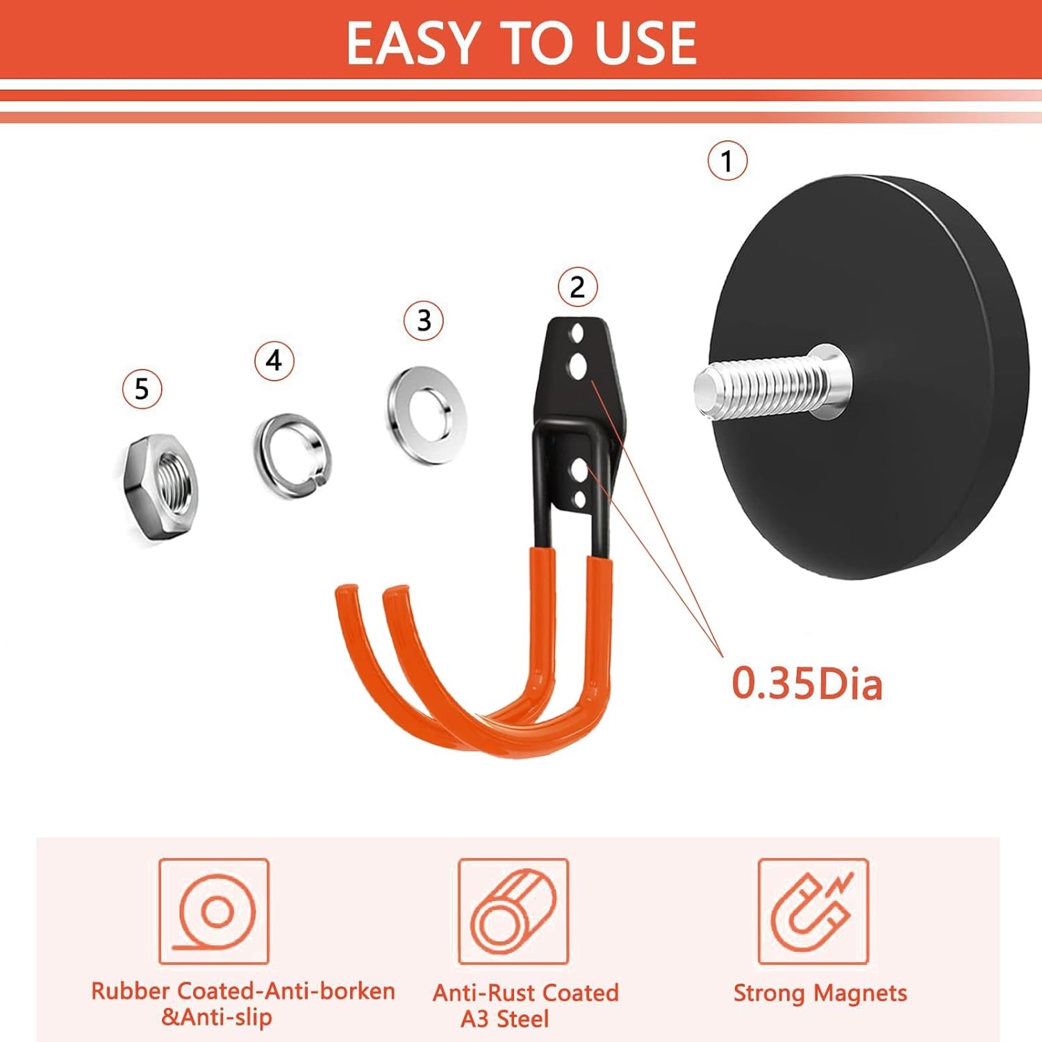 - π§²[Aniti-Scratch Magnetic Hooks]: The magnetic hooks are sturdy and durable, the round black non-slip rubber coating on the bottom is designed to fix objects, protect its surface from scratches or damage, and prevent the hook from slipping and rusting.These magnetic garage hooks can be used indoors and outdoors.
