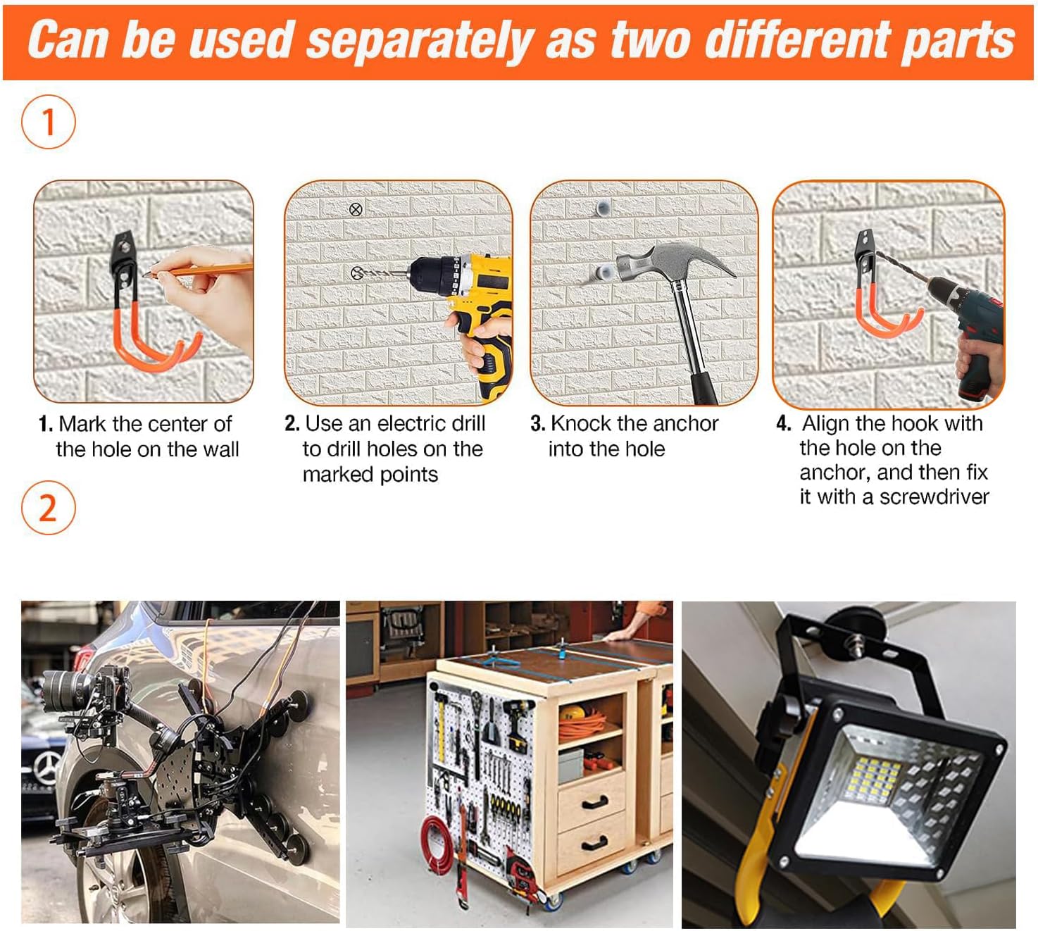 - π§²[Super Convenient Magnetic Hook]: There are no need to drill holes everywhere, just put the magnetic hook on the metal surface(more than 0.04" thickness would be perfect),then you can hang cables, drills and other power tools neatly and conveniently, You can move around the magnetic hooks easily and freely when you need.