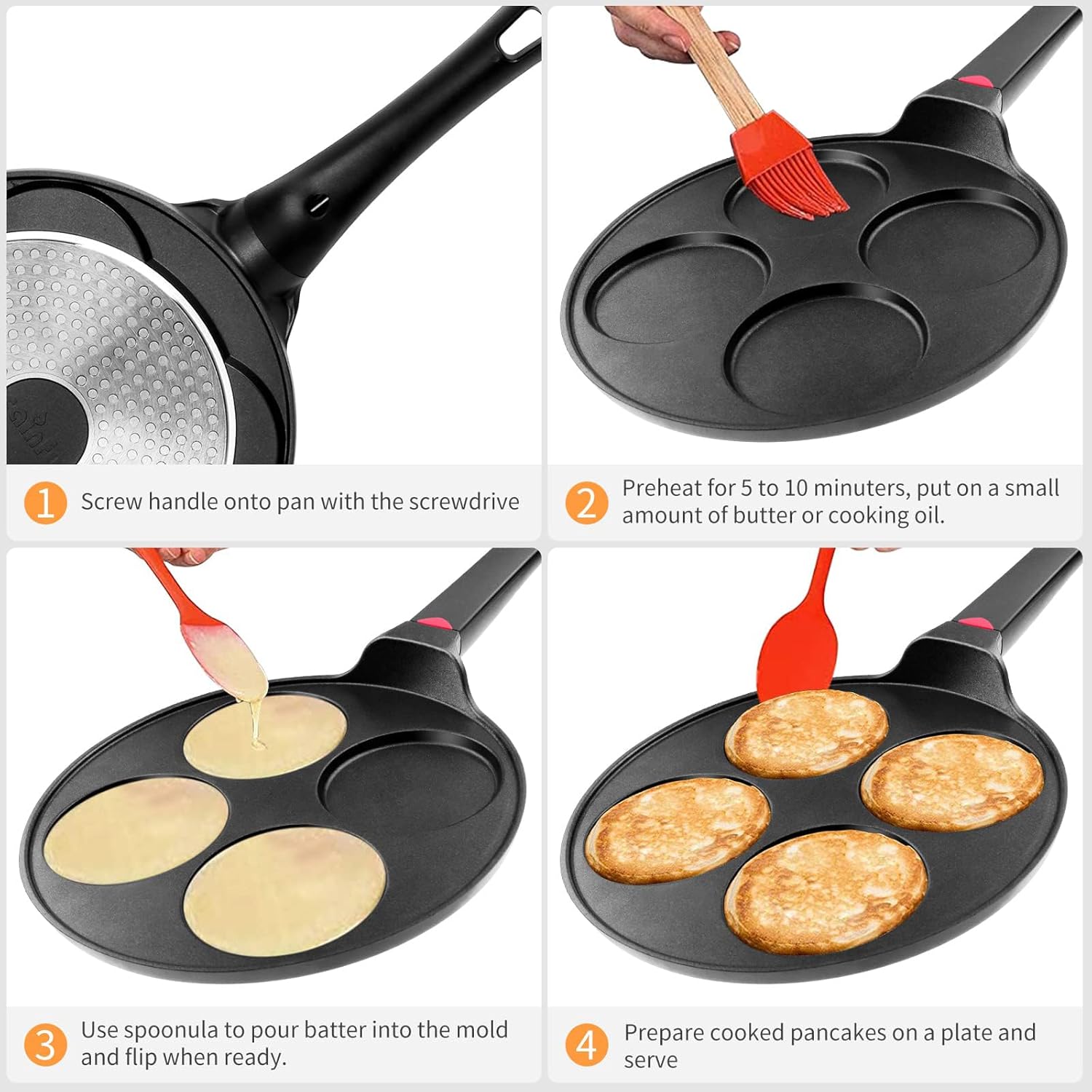 - Heats Quickly & Evenly β Made of sturdiness die cast aluminum, durability and light weight. 3 - layer thickened pot bottom evenly heated ensures maximum heat transfer for fast, not leave dark spots on your mini pancakes / omelets.