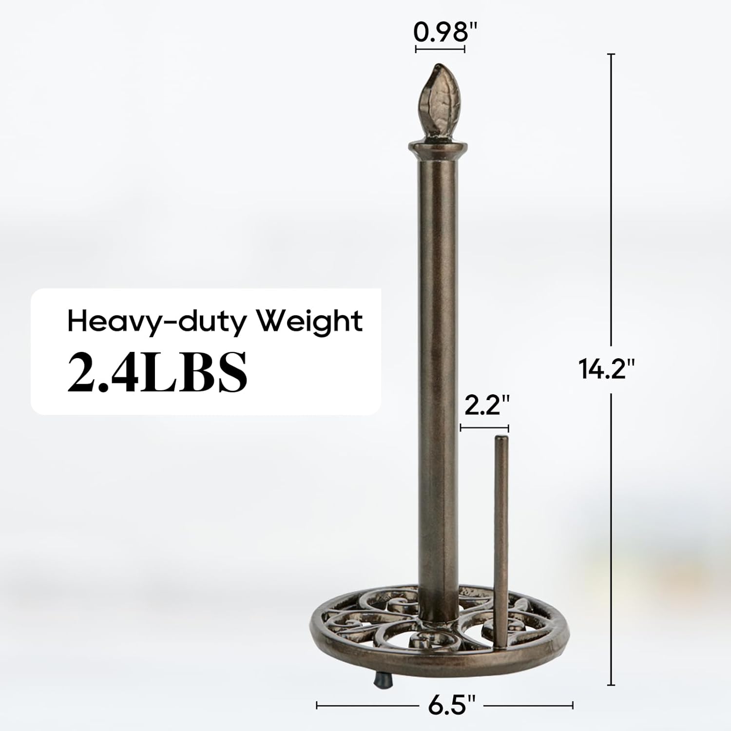 - Vintage Style & Traditional Handicraft: Vintage heavy towel paper holder with a non-slip mat which more stable and prevent kitchen table scratch, slid. Using handcrafted traditional cast iron techniques having a unique artistic style