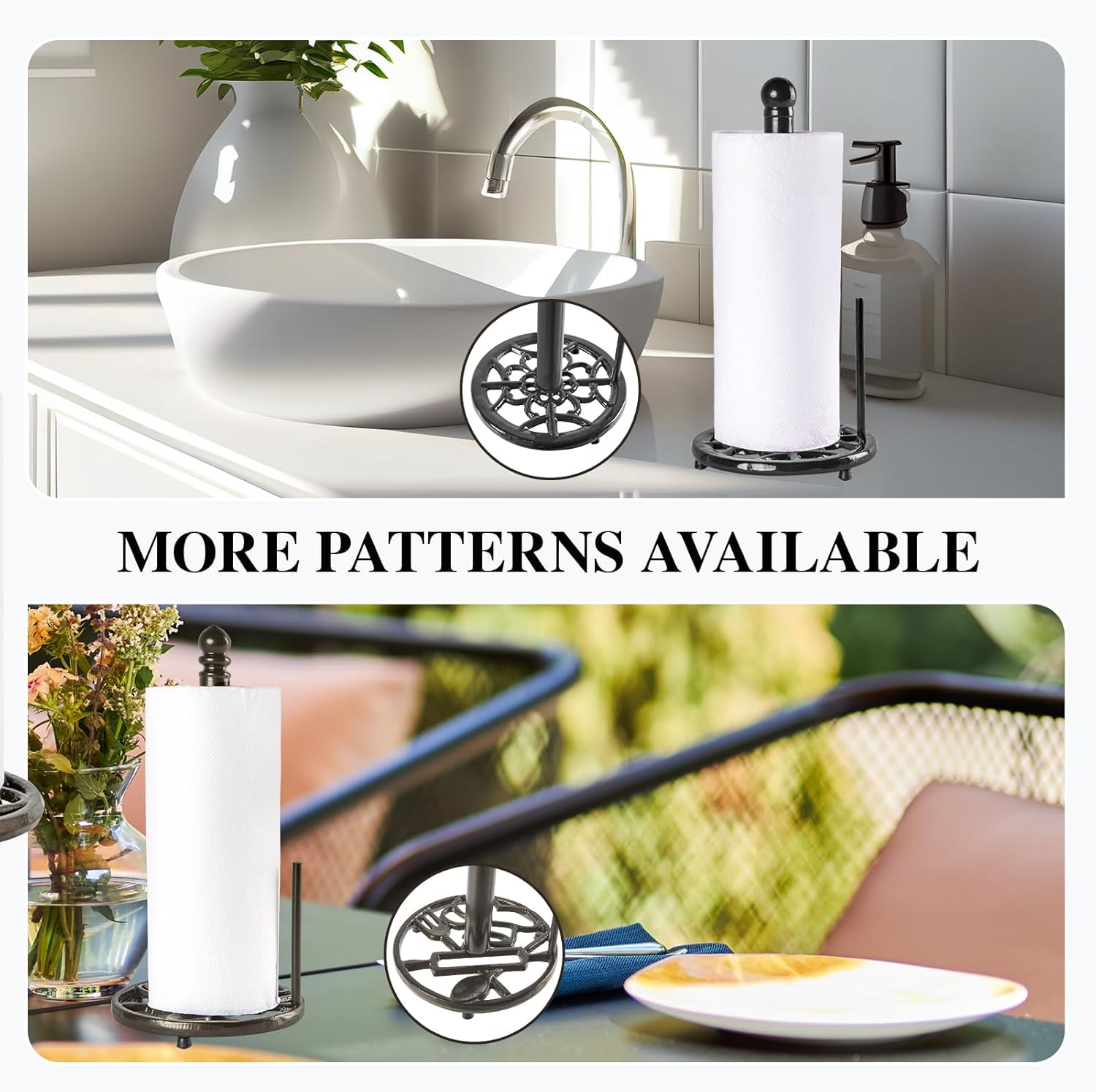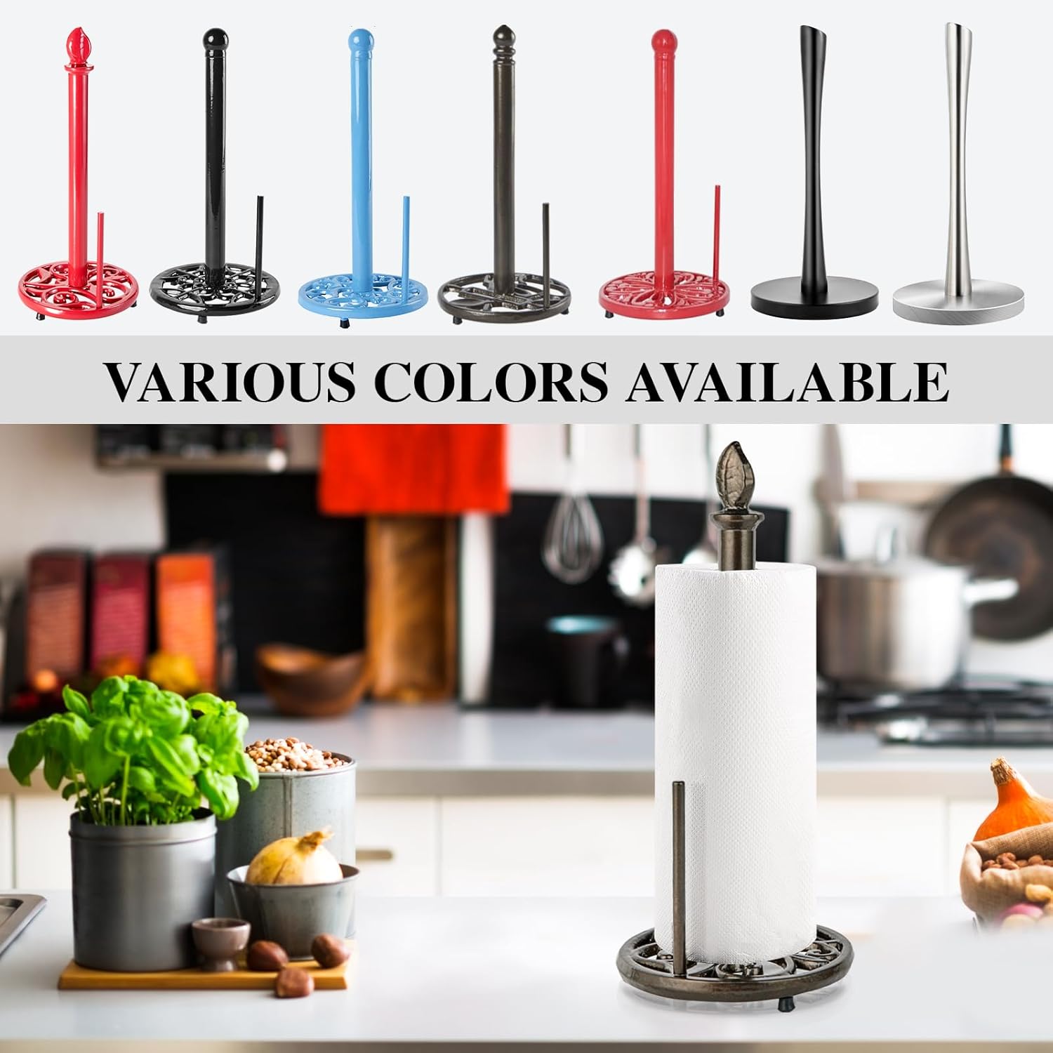 - Sturdy & Stable: Metal paper towel holder made of cast iron material which is Rustless, Fastness, Wear-resistant, Heat-resistant, Stable shape, Strong tension, Anti-aging, and Long service life. Wipe clean with a damp cloth