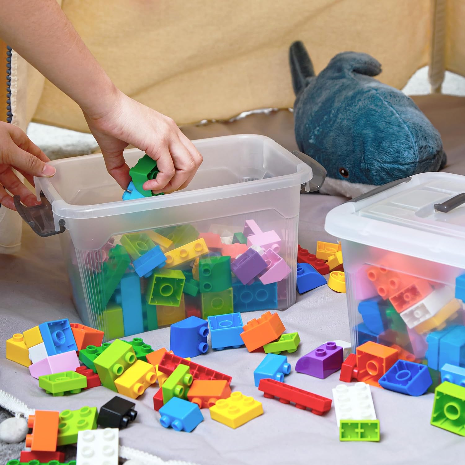 - 【Transparent & Portable】These organizer boxes are made of transparent plastic so you can quickly and easily find what you need. Two ergonomic latches lock to secure the lids in place and make for a comfortable grip and handle when moving or storing the container. The attached handle on top of the lids provides portable transport from one place to another;
