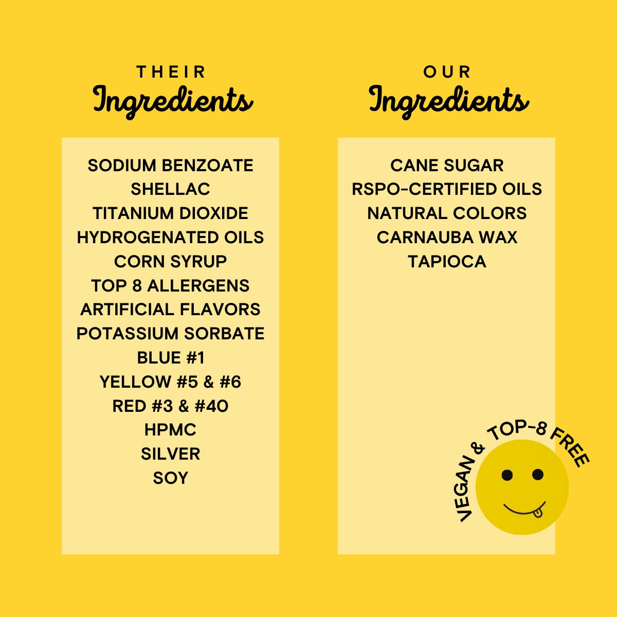 - NO CONFECTIONERβS GLAZE: Did you know most sprinkles get their shine from bug goop? We keep it vegan with a formula thatβs friendly to all creatures, big and small.