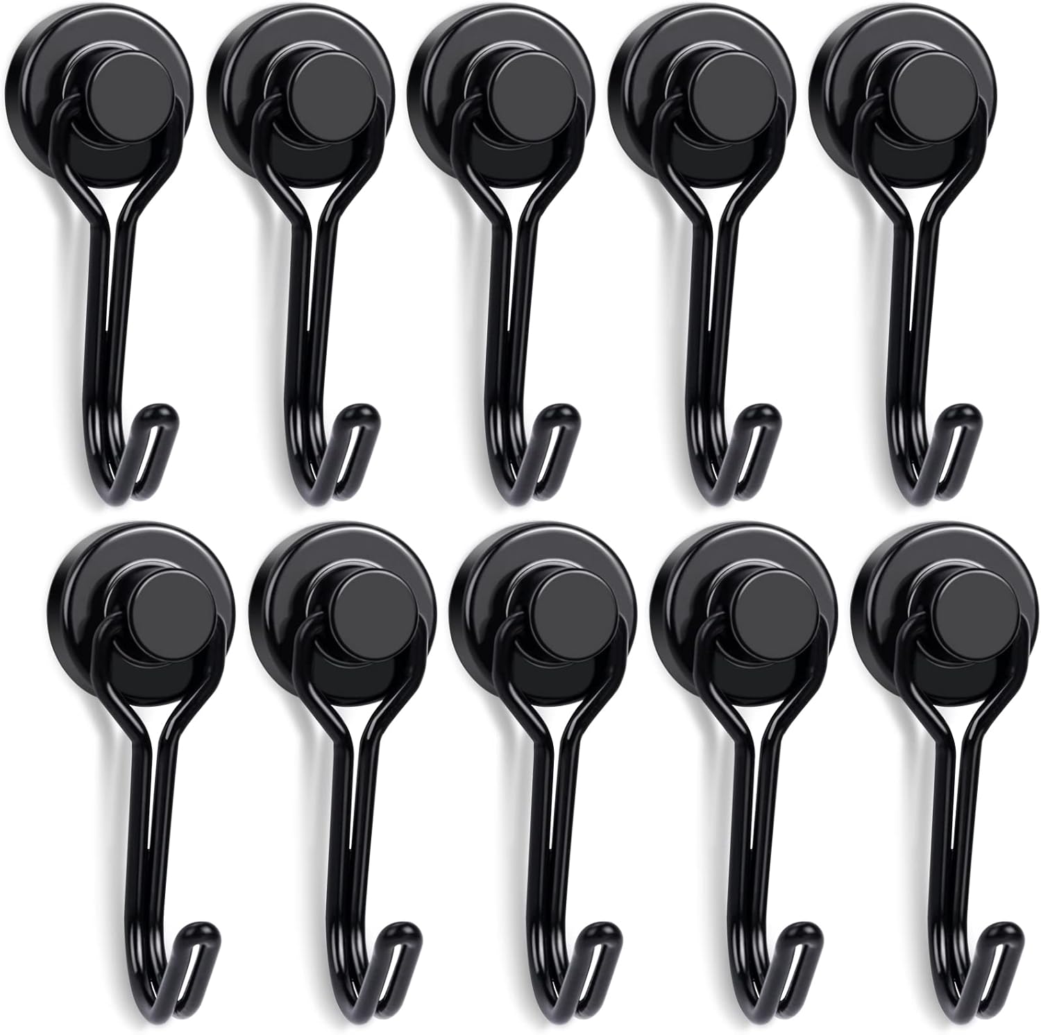 E BAVITE Swivel Swing Black Magnetic Hooks, 30lbs Strong Neodymium Magnet Hook with Epoxy Coating for Refrigerator, Cruise,BBQ Grill Tools, 2.36in in Length, Pack of 10