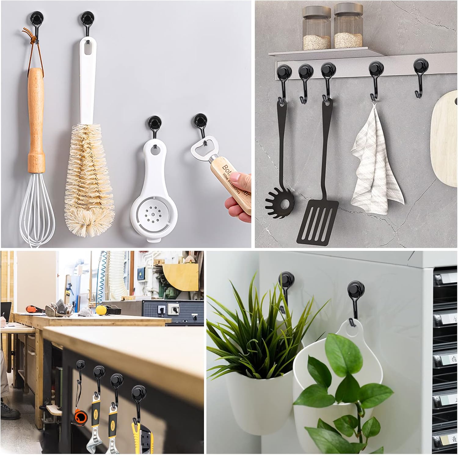 - 【Wide Application】High grade neodymium magnetic hooks for organization, mounting, decorating and storage. Our Powerful magnetic hooks are perfect for home , kitchen , office, garage,cabinets, grill, refrigerator,Cruise and more!