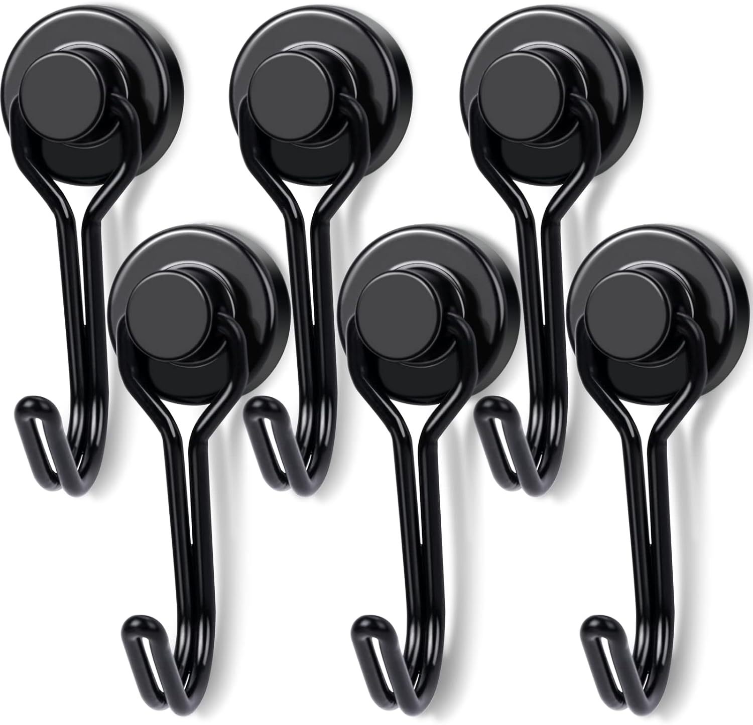 E BAVITE Magnetic Hooks, 30lbs+ Magnet Hook 2025 Cruise Cabin Ship Essentials Heavy Duty Strong Magnets Refrigerator Fridge Hanging for Classroom Beach Vacation Kitchen Grills Home 6pcs (Black)