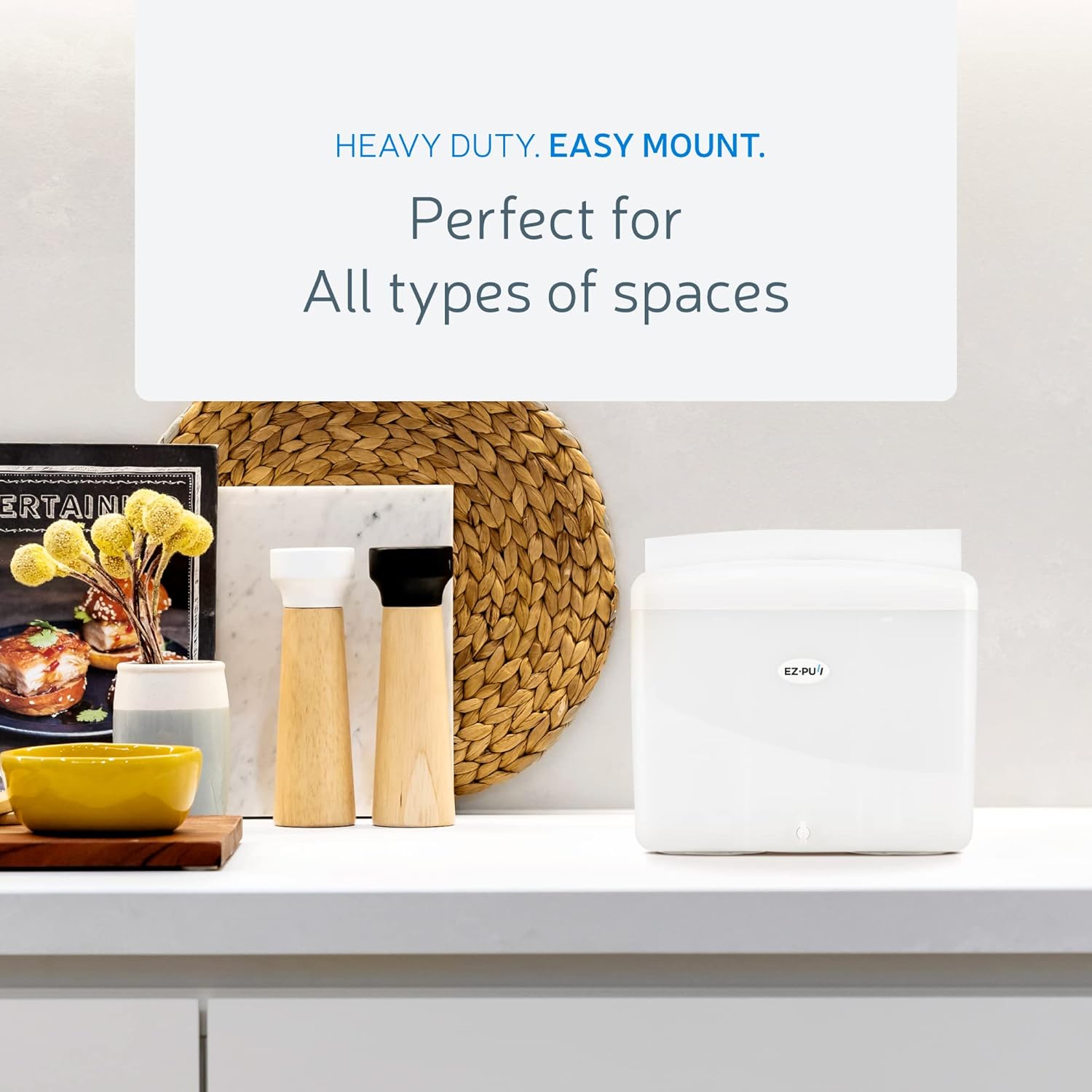 EZbrnd Countertop MULTIFOLD Paper Towel Dispenser for Kitchen/Bathroom/Office/RV/Airbnb, Pearl White, 4500-EZ
