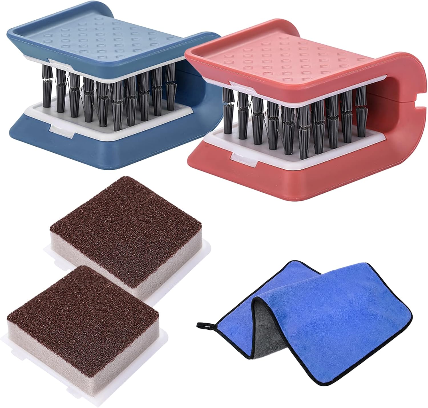 Knife Cleaner, 2 Pack Cutlery Cleaner, Blade Cleaner with 2 Pcs Replacement Sponge Brush Head,Microfiber Cleaning Cloth, for Kitchen Chopsticks Fork Spoon Knives Washing(Blue,Pink)