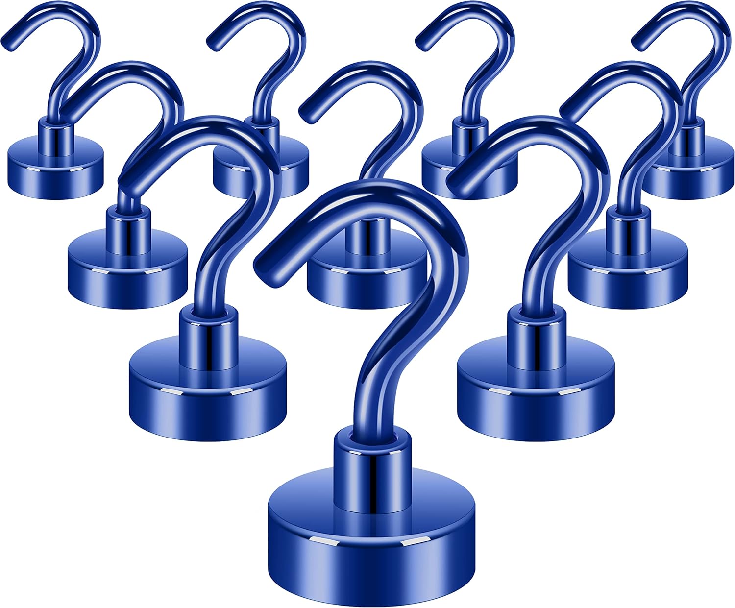 Neosmuk Magnetic Hooks,30lb+ Heavy Duty Earth Magnets with Hook for Refrigerator, Extra Strong Cruise Hook for Hanging, Magnetic Hanger for Cabins, Grill (Navy Blue,10 Pack)