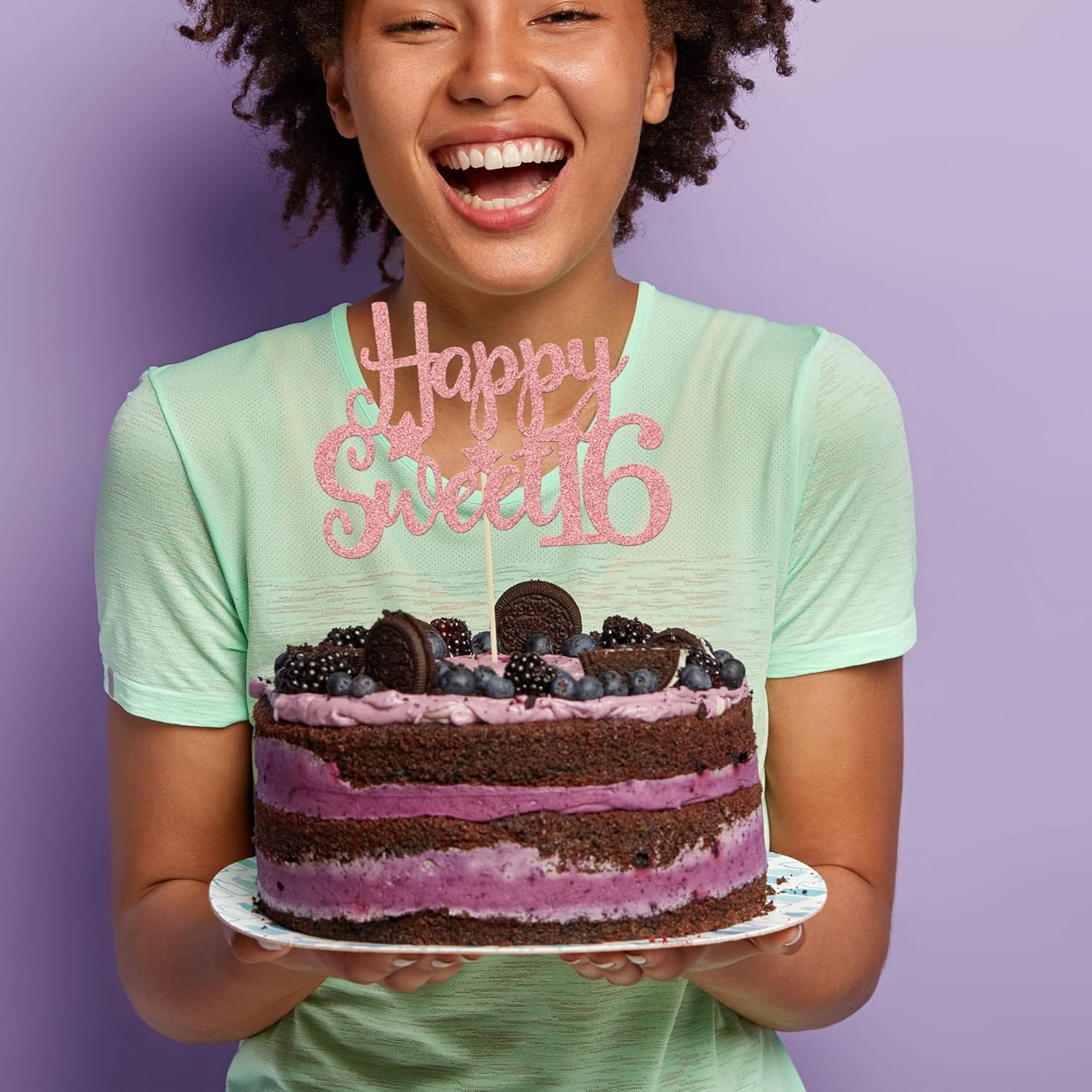 - ๐๐Premium Material: This Happy Sweet 16 Cake Topper is made of high quality 300 gram card stock and food-grade toothpick, very safe to put them on cakes, cupcakes, ice cream, fruits, pie, dessert, cheese or any dish and food appetizer you want to decorate fruit theme party decorations.