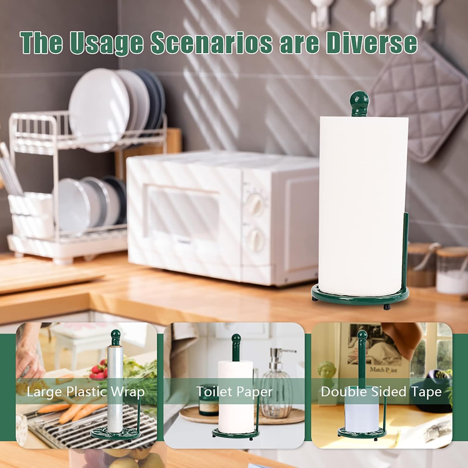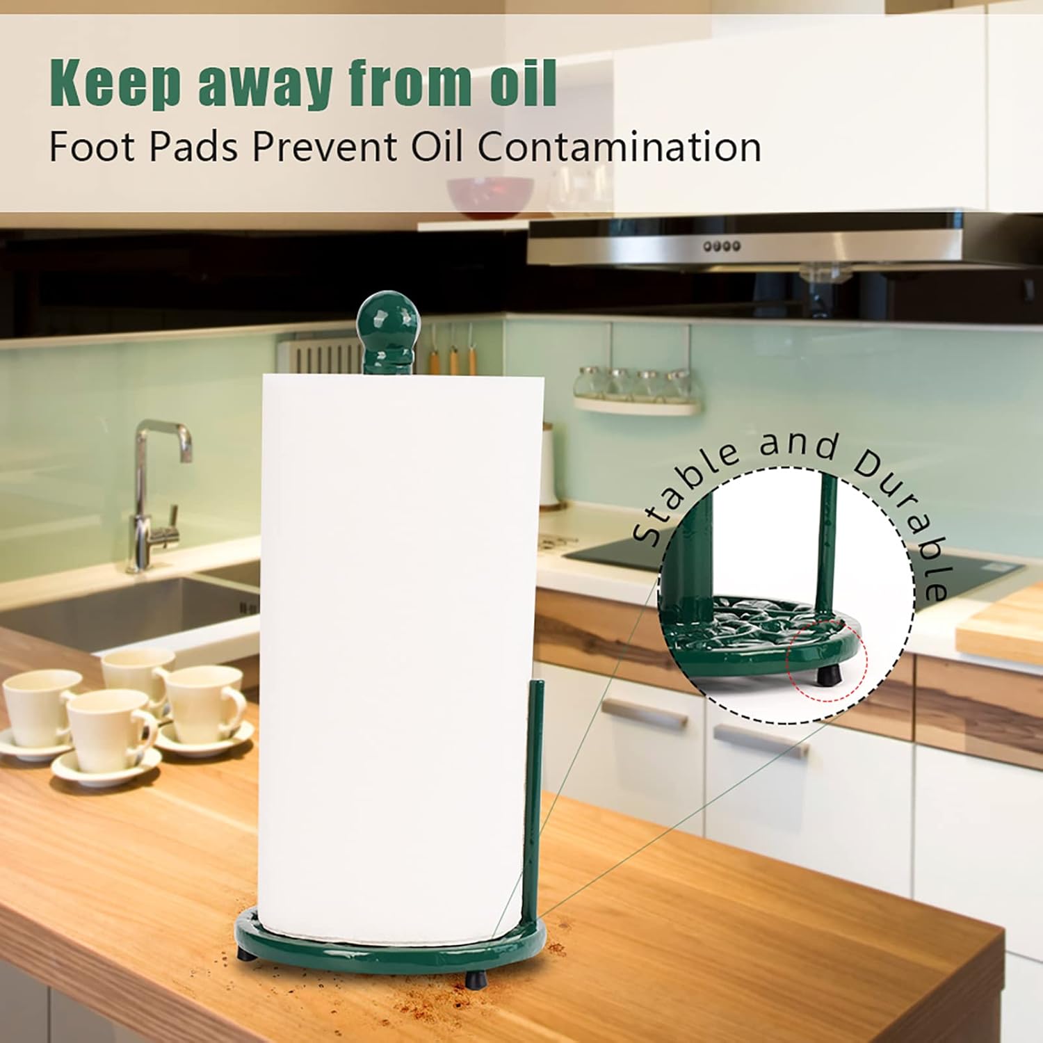 - 🎃【Protects Countertops】This paper towel holder has 4 rubber feet that prevent scratches and provide a non-slip grip on your countertops.
