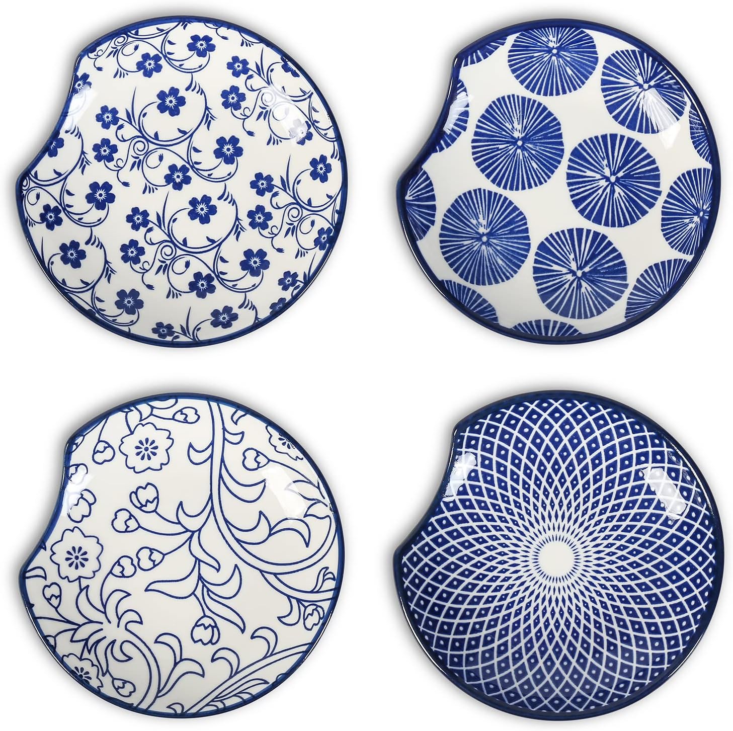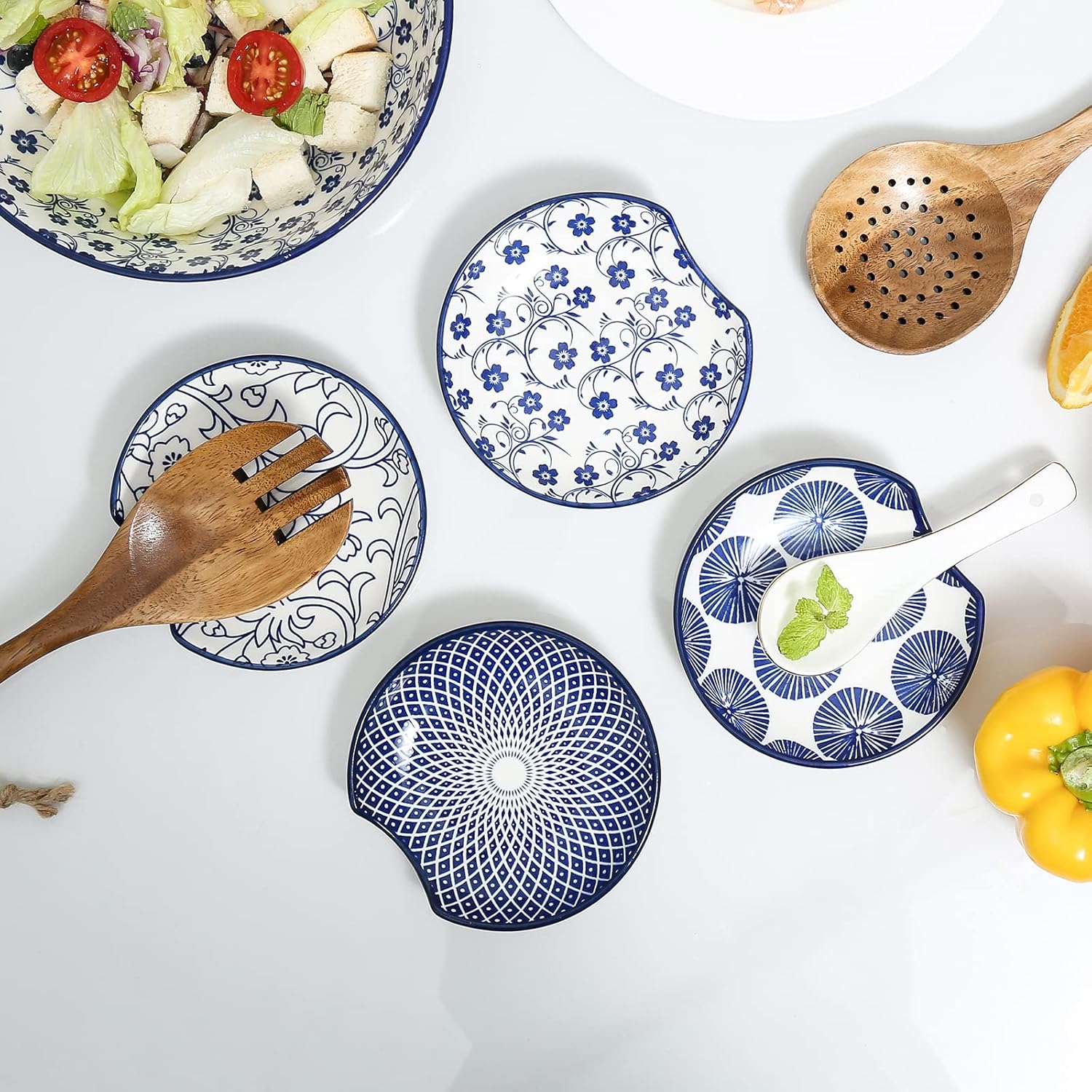 Selamica Ceramic Spoon Rest for Stove Top, 4.6 Inch Cooking Spoon Holder for Kitchen Counter, Stackable Utensil Rest Holder for Spatula Ladles Tong, Set of 4, Vintage Blue