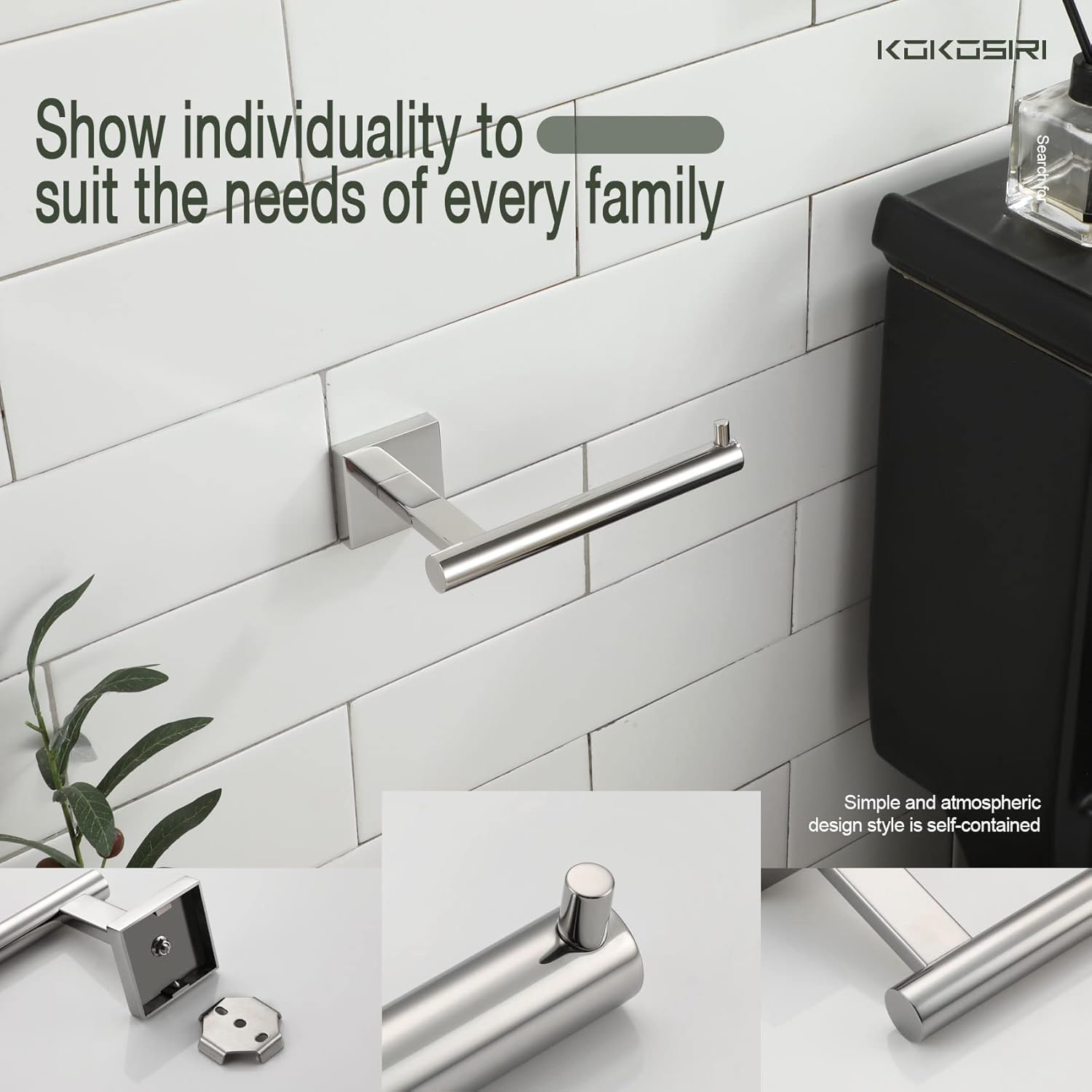 - ◄ Package ► Included toilet paper holder x 2, bracket(already set well), screw pack and hex wrench. Backed by KOKOSIRI's One Year Limited Warranty