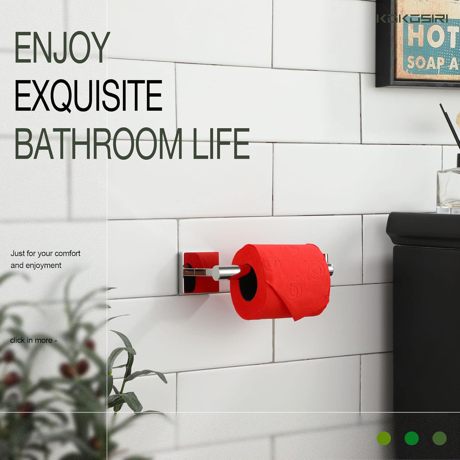 - ◄ Rustproof ► KOKOSIRI toilet paper holder made of SUS 304 Stainless Steel (premium stainless steel). All metal design and used of high-grade steel which can resist rust and corrosion. For your health, all the materials we use are the highest quality and harmless. You can rest assured to use all of our products