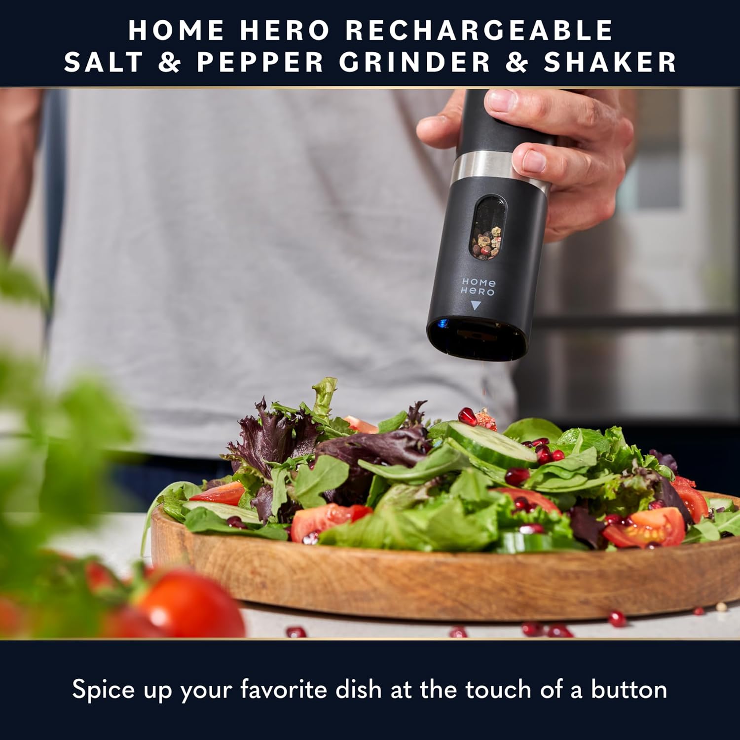 Home Hero Electric Salt and Pepper Grinder Set - Automatic Salt and Pepper Grinder Set Rechargeable. Electronic Salt and Pepper Shakers with LED Light, Electric Pepper Grinder & Salt Grinder, Set of 2