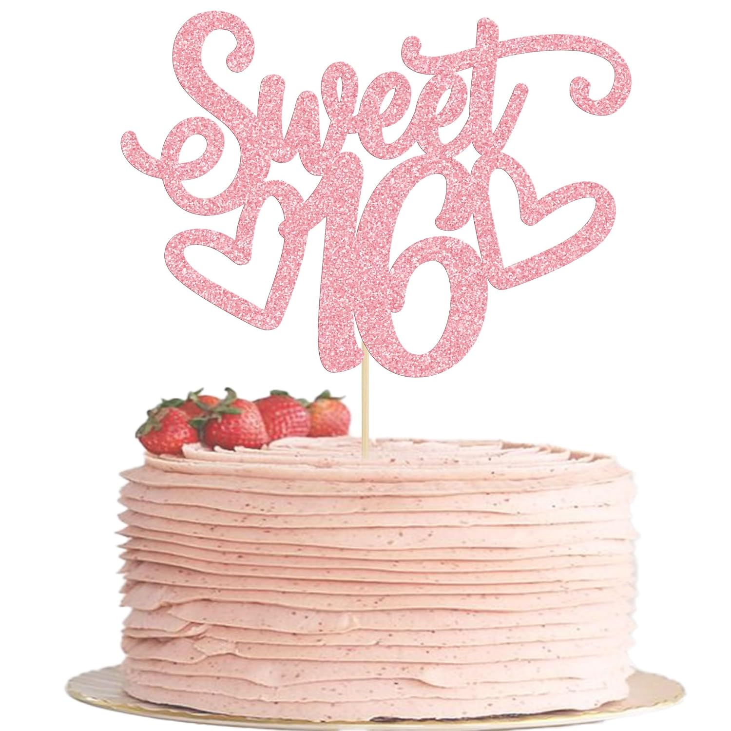 Gyufise 1Pc Sweet Teenager 16 Cake Topper Glitter 16th Birthday Cake Pick for Cheers to 16 Years Old 16th Birthday Party Cake Decorations Supplies Pink