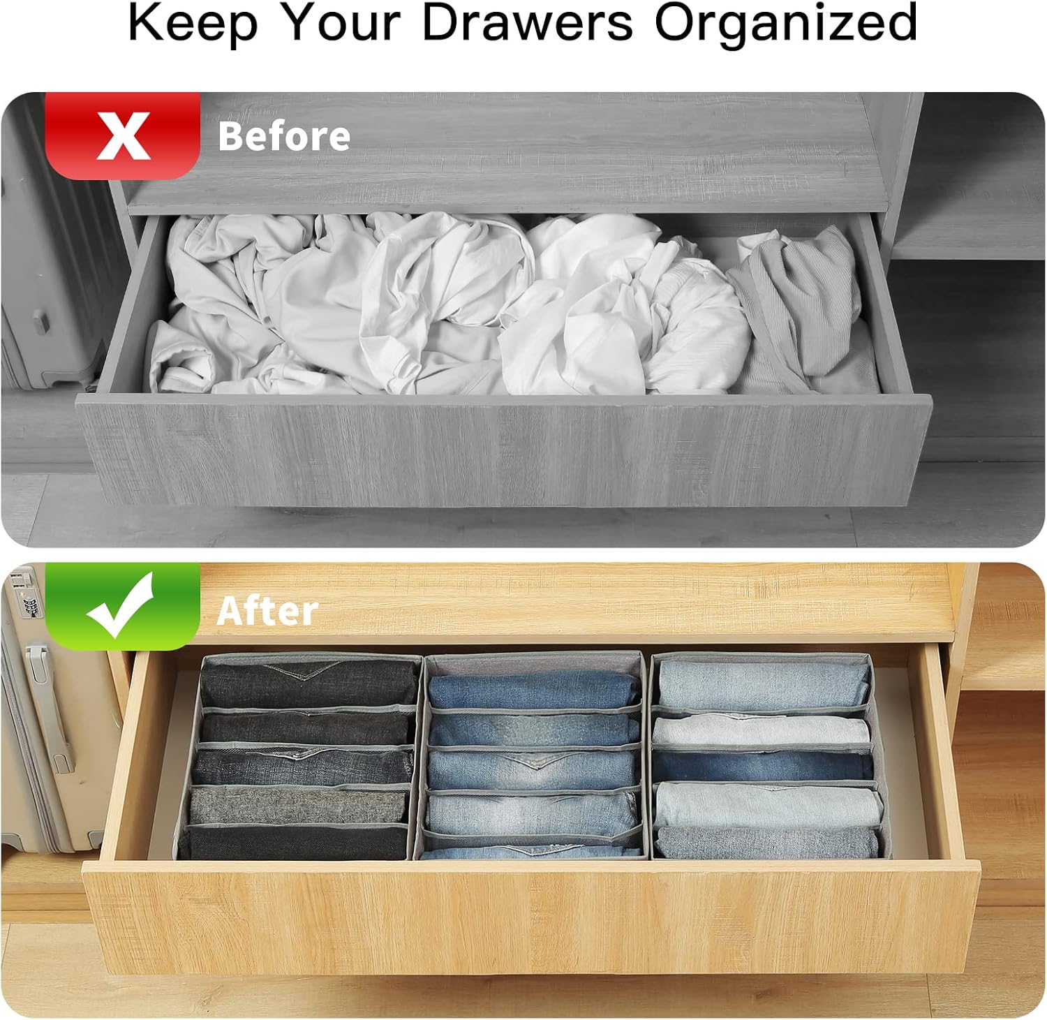 - KEEPS YOUR PANTS ORGANIZED & EASY TO FIND: The 4 pack of clothes organizer for folded clothes can hold 20 pieces of clothing, you won't have to rummage through drawers looking for clothes, the pants organizer for drawer allows you to see every piece of clothing, keeping your drawers organized and easy to find items quickly.