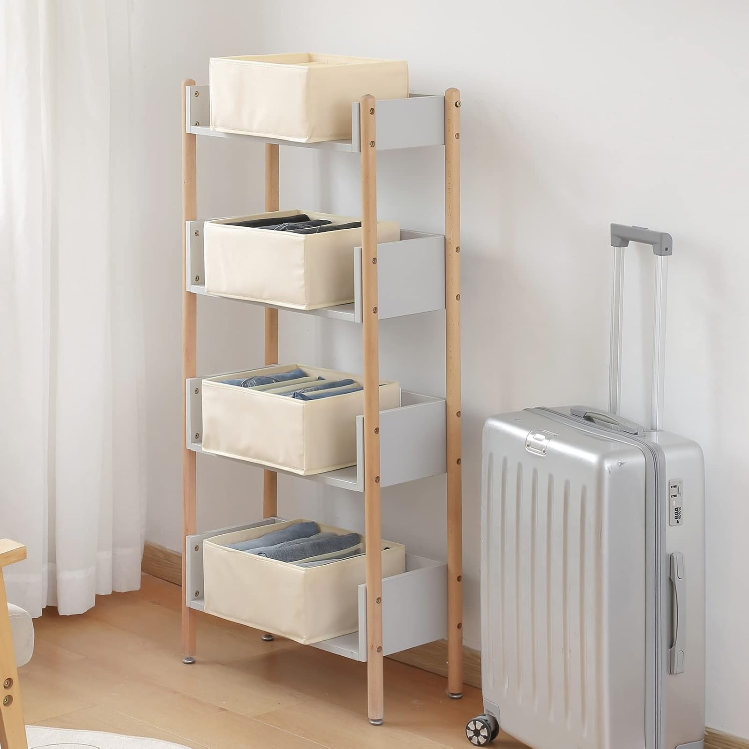 Qozary Jeans Pants Organizer for Closet, 4 Pack Drawer Organizers for Clothing, 5 Grids Wardrobe Clothes Organizer, Jean Organizer for Closet, Deep Drawer, Clothes Organizer for Shirts, Legging