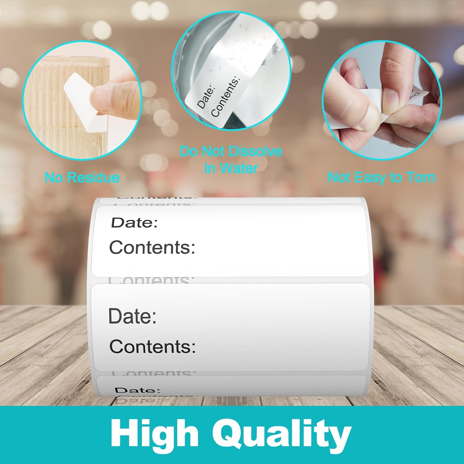 - Large Enough to Writeβ 1 x 3 Inch Food storage labels are large enough to write the date and items comfortably. 500 pcs removable bottle labels on a package.Printed with βDateβ and βContentsβ fields for convenient reminding,the High-light premium sticker equips with high-quality glue, which keeps your reminder bright and shiny for a long time.