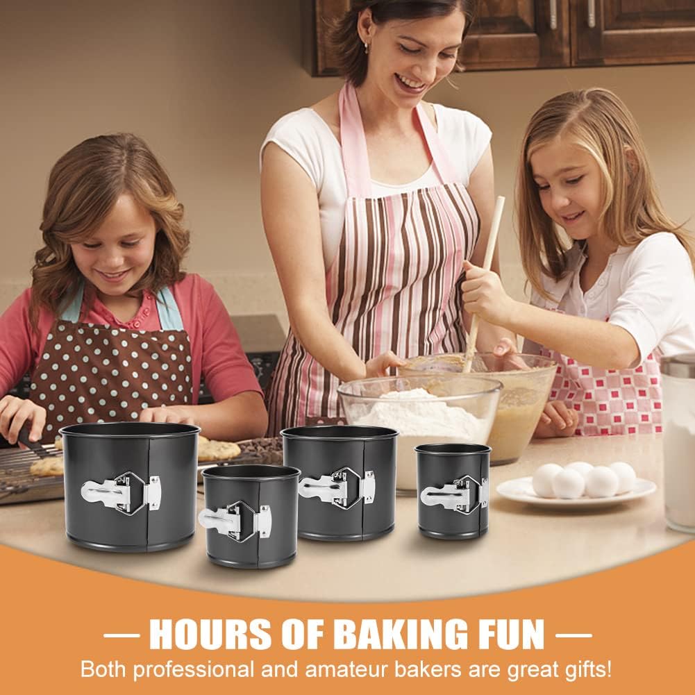 4Pcs Premium Springform Pan Nonstick - Cheesecake Pan With Removable Bottom - No Need For Parchment Paper - Spring Form For Baking - Leak-Proof Cake Pan (Black)