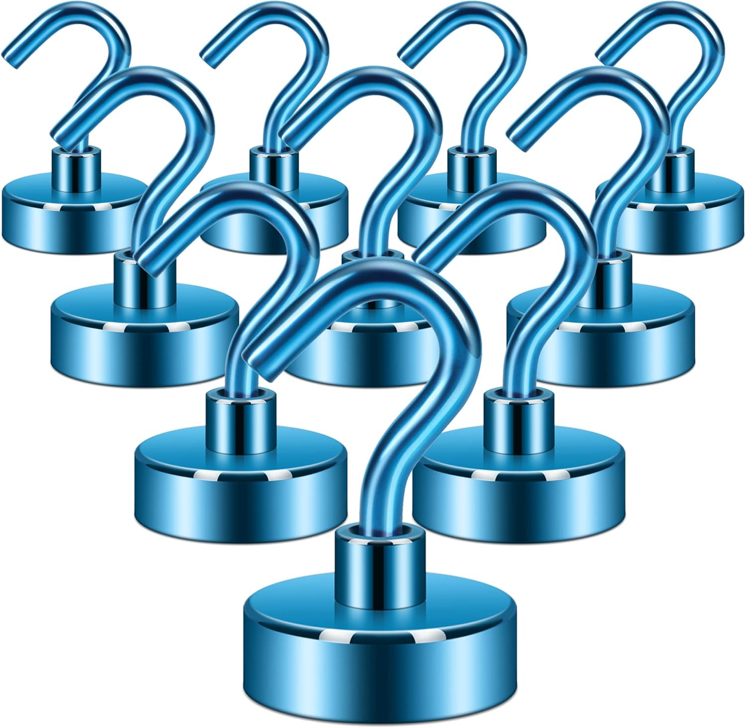 Neosmuk Magnetic Hooks, Heavy Duty Earth Magnets with Hook for Refrigerator, Extra Strong Cruise Hook for Hanging, Magnetic Hanger for Cabins, Grill (Blue, Pack of 10)