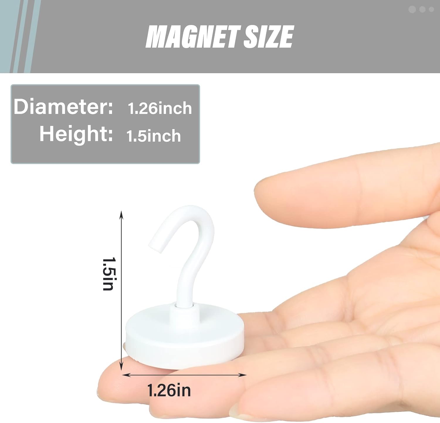 - ✔ HIGH-LEVEL PLATING- We offer 4 layers of coating on the magnet hook metal base, metal hook, and magnet. It provides this magnetic hanger with a shiny and rust-free finish. Coated magnetic hook particularly exhibits an excellent anti-corrosive properties and scratch resistance. Maintenance-free, no rust!