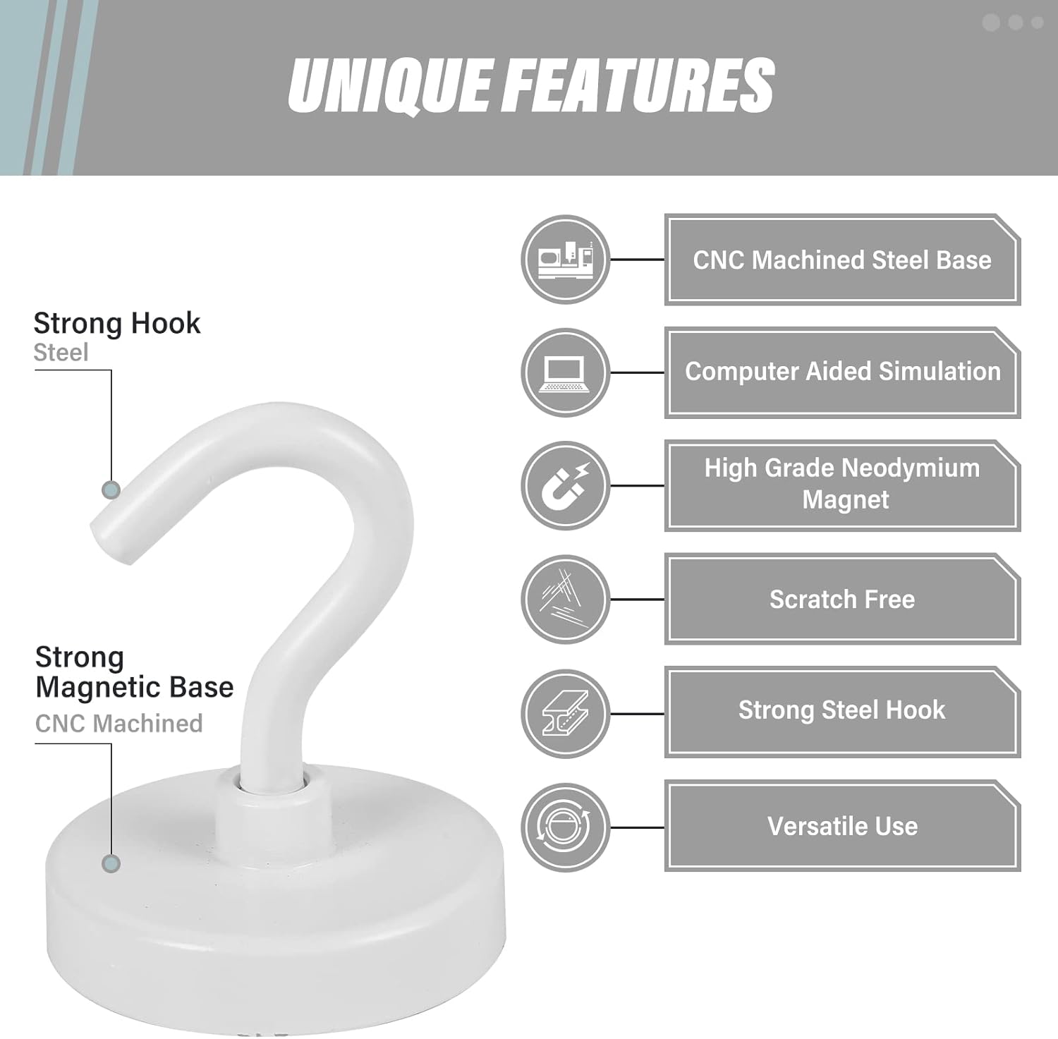 Neosmuk Magnetic Hooks Heavy Duty,Strong Magnet with Hook for Fridge, Super Neodymium Extra Strength Industrial Hooks for Hanging, Magnetic Hanger for Toolbox, Cruise, Grill(White,10 Pack)