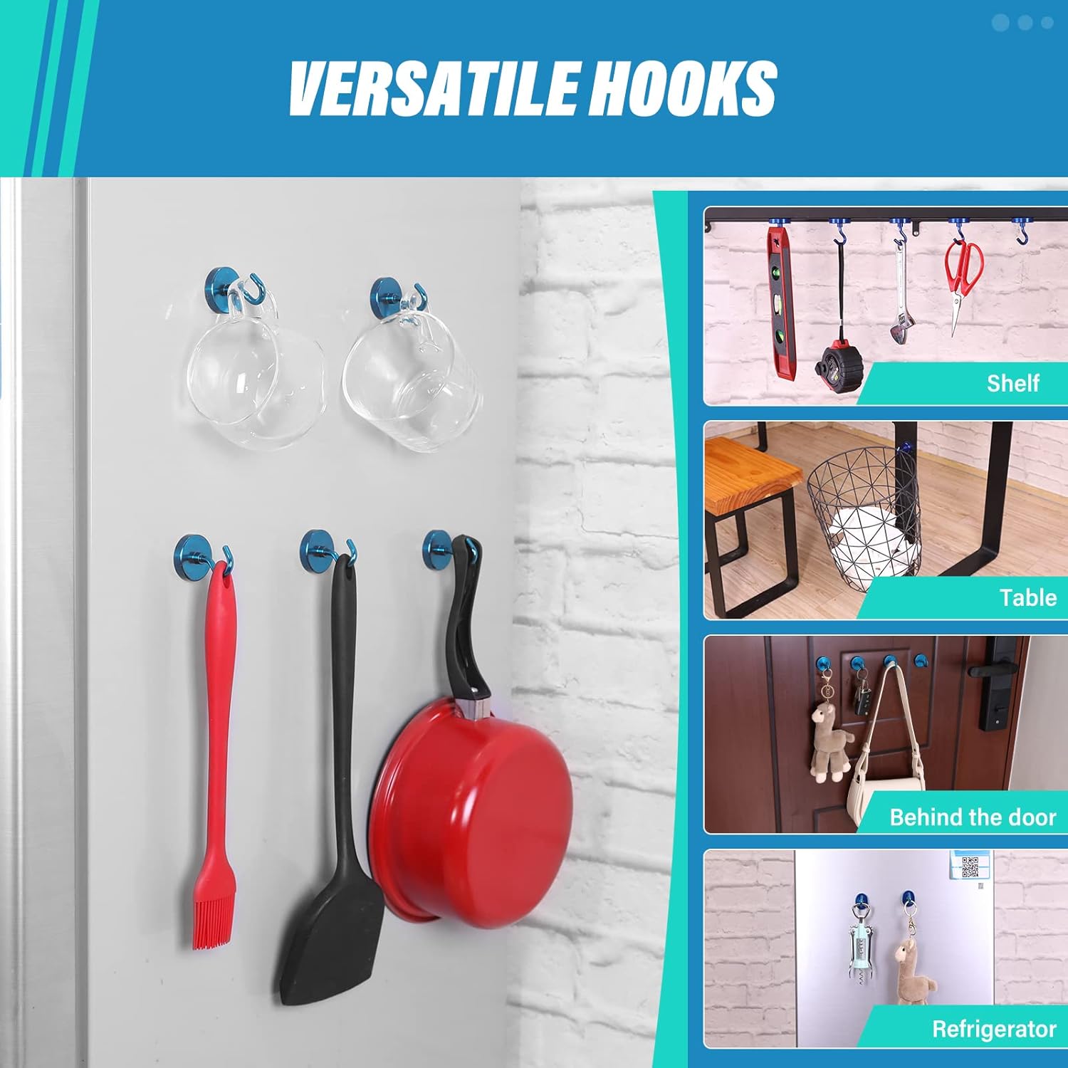 - ✔ VERSATILE USE- Neosmuk’s strong neodymium magnetic hooks were endowed with a strong capability for holding various items wherever there is iron or steel. This magnet hook is a perfect magnetic key holder. You can also hang your tools next to the toolbox with this magnetic hook. Our magnetic hooks are great for grill, pot, cup, utensils, and oven.