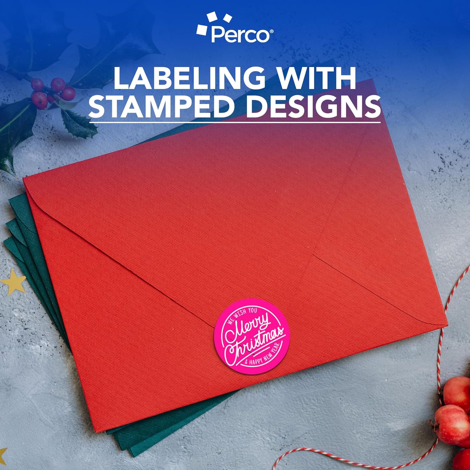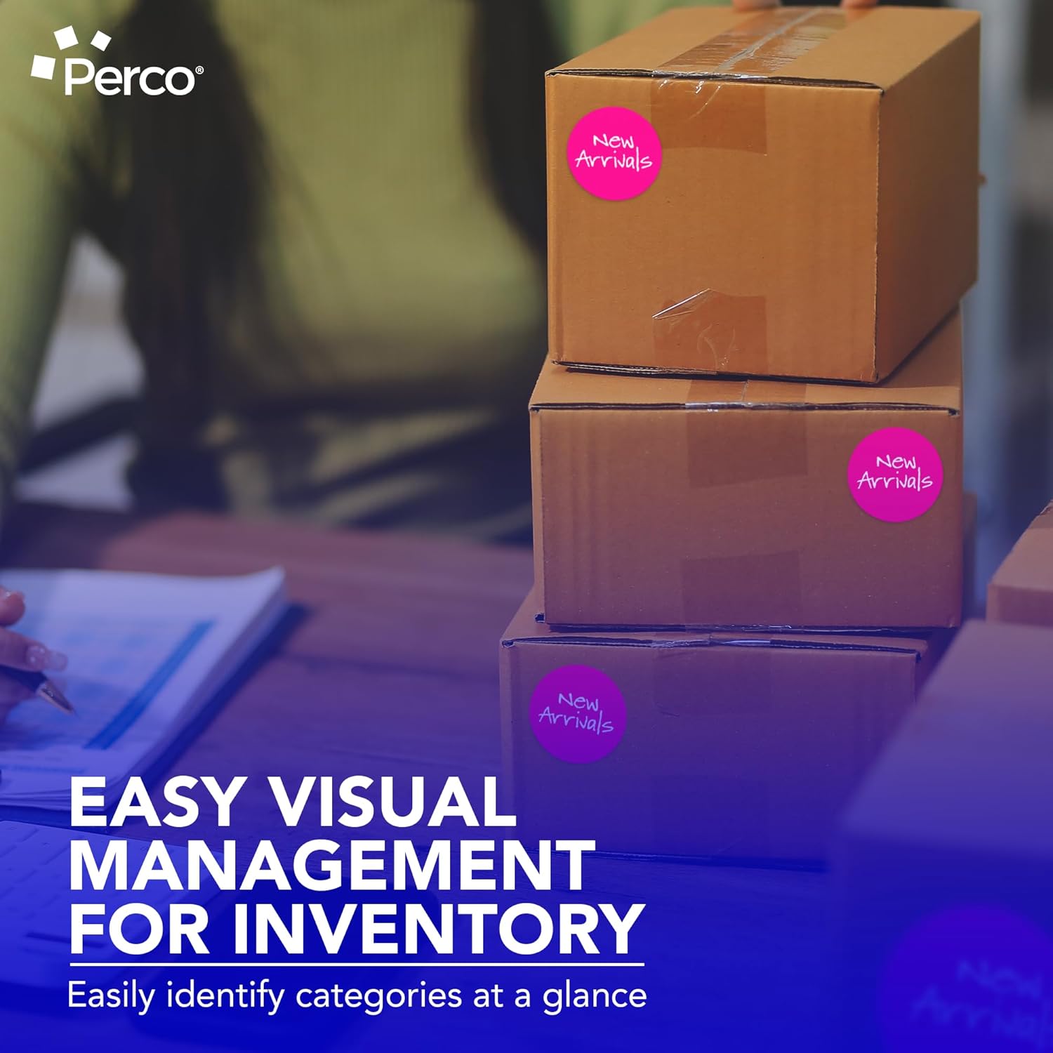 Perco Fluorescent Pink 3-Inch Round Circle Dot Sticker Labels with Easy Peel Perforation - 500 Labels per Roll - Strong Adhesion, Vibrant Colors for Organizing, Crafting & More - Made in USA