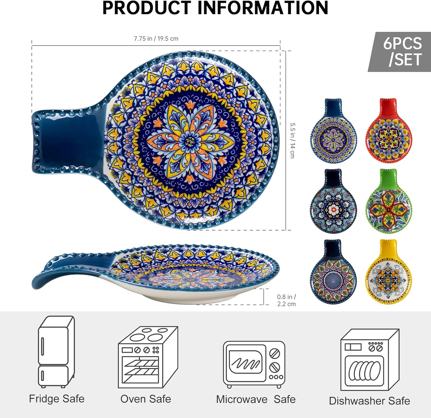 - VIBRANT COLOR & SPECIAL PATTERNS - Designed by hand-painted art with brilliant colors and intricate motifs, this colorful kitchen spoon rest is perfect for any household with a passion for cooking. With high temperatures for coloring and glazing, ceramics won't fade. The geometric design on these spoons holder not only keep your kitchen neat and organized, but also adds color and style to your table and kitchen.