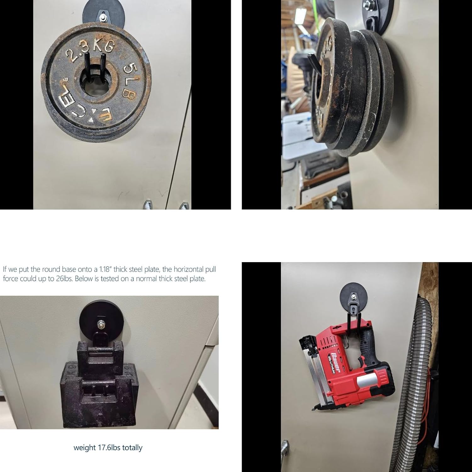 - π§²[Multiple use]: This hook has a strong 3.46-inch magnet base with a threaded bar, nut, spacer, and a coated hook. We tested it, and this large J-shaped magnetic hook can hold EV chargers, two gallons of bottled water, various garage tools, drills, and toolboxes.