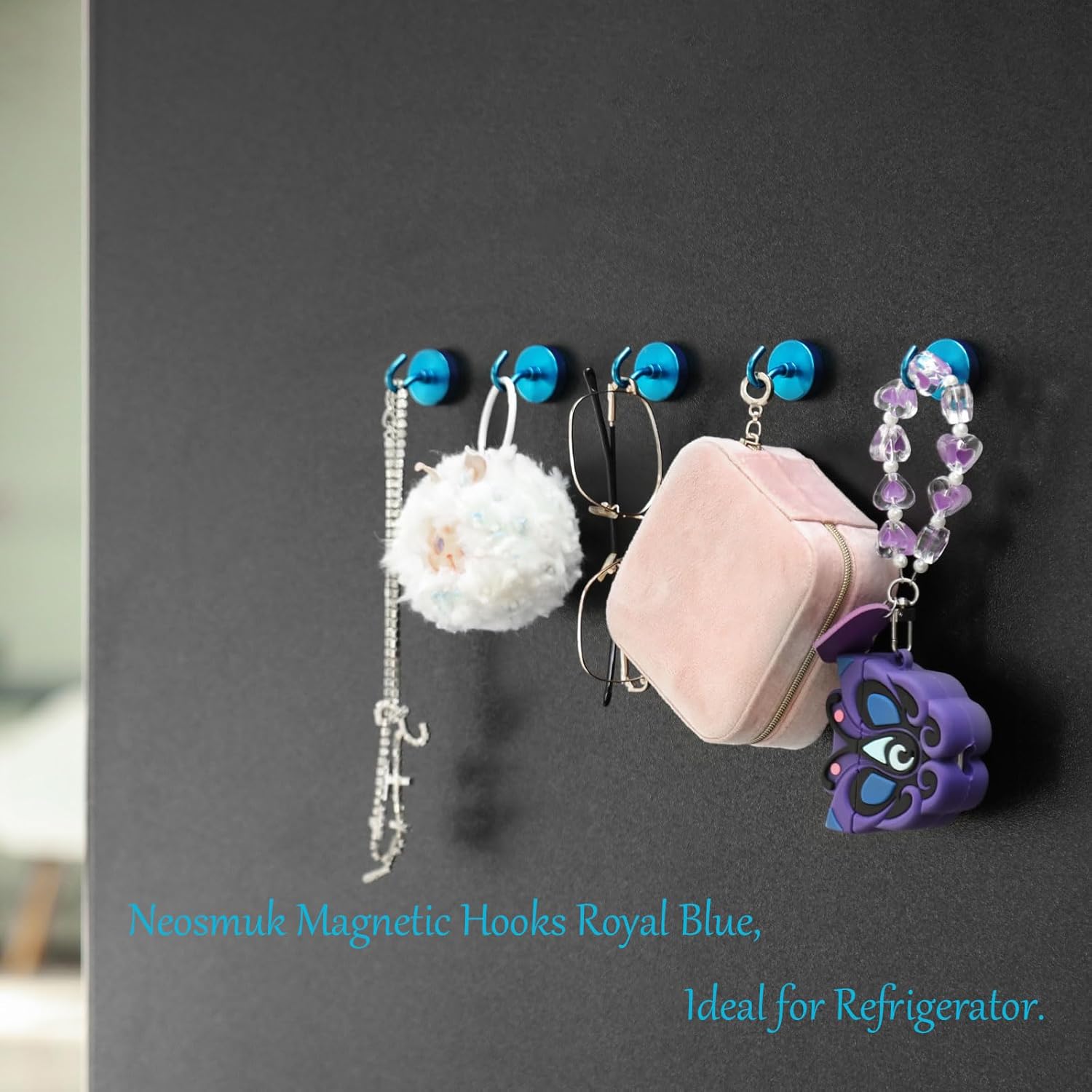 Neosmuk Magnetic Hooks Heavy Duty,Strong Magnet with Hook for Fridge, Super Neodymium Extra Strength Industrial Hooks for Hanging, Magnetic Hanger for Toolbox, Cruise, Grill(RoyalBlue,10 Pack)
