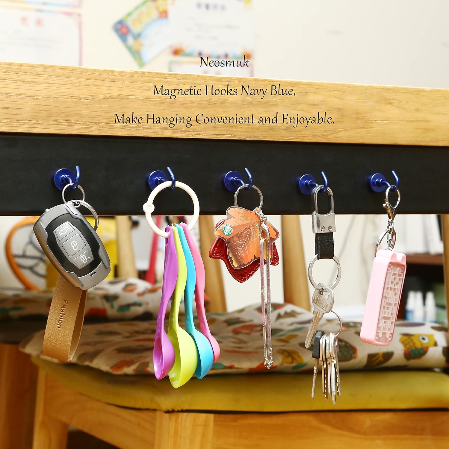 Neosmuk Magnetic Hooks,30lb+ Heavy Duty Earth Magnets with Hook for Refrigerator, Extra Strong Cruise Hook for Hanging, Magnetic Hanger for Curtain, Grill (Navyblue, 15 Pack)