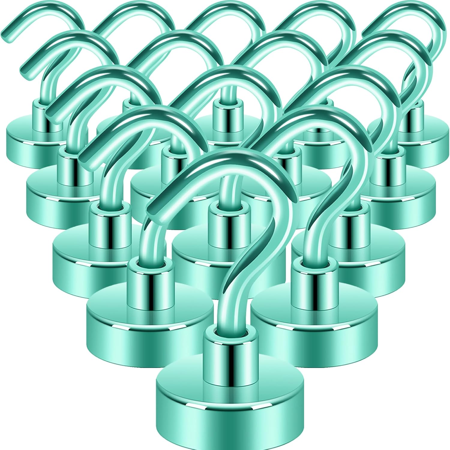 Neosmuk Magnetic Hooks,30lb+ Heavy Duty Earth Magnets with Hook for Refrigerator, Extra Strong Cruise Hook for Hanging, Magnetic Hanger for Curtain, Grill (Green, 15 Pack)