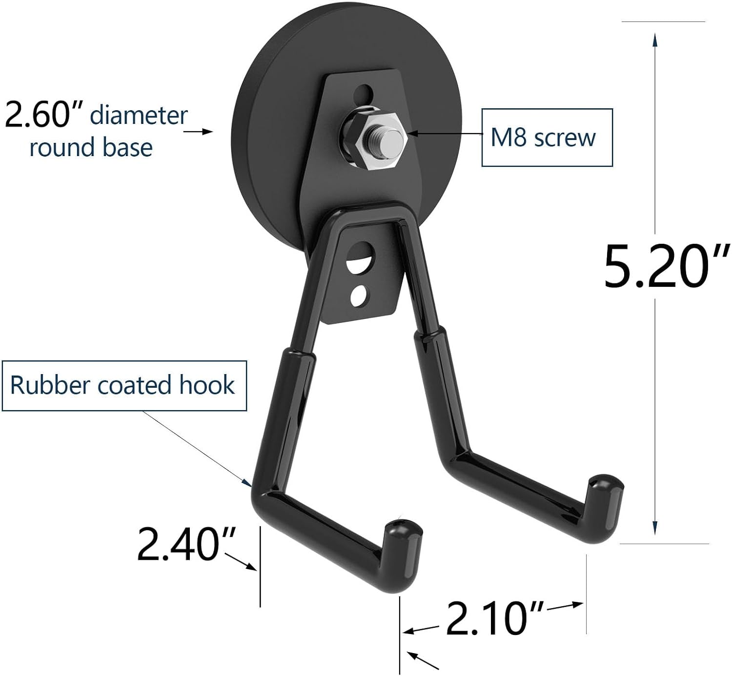 - π§²[Multiple Use Hooks]: This magnet hook includes a robust 2.60-inch magnet base with a threaded bar, nut, spacer, and a PVC coated hook. We put it to the test, and this magnetic hook can securely hold any type of EV charger, one gallons of bottled water, and a variety of garage tools, drills, and toolboxes.