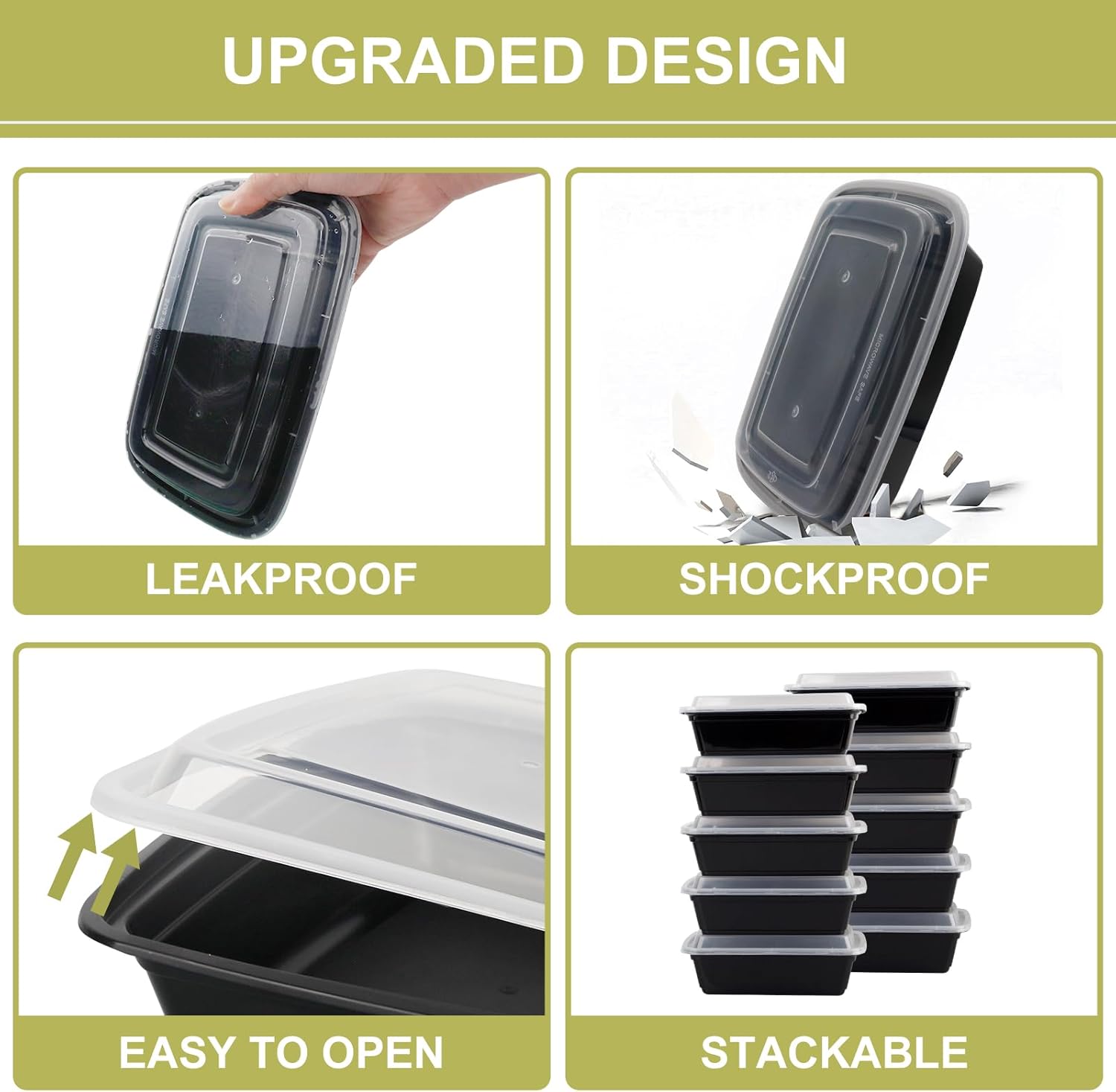 - γPracticality and ConvenienceγThese food containers with lids are perfectly sized for individual meals or portioned snacks. The 38 oz capacity is generous enough for most lunch or dinner portions, have truly streamlined meal planning and storage routine, and keep your food fresh and make meal prep a breeze.The leak-proof lids ensure that food stays secure during storage and transport, making them ideal for meal prepping, storing leftovers,or on-the-go meals.