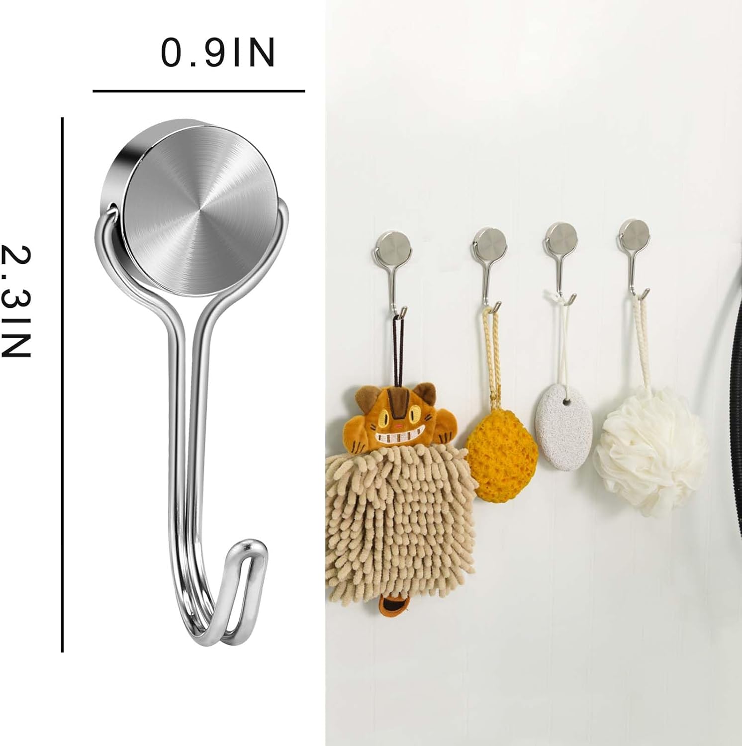 - 【Stainless Steel, Anti-rust】These magnetic hooks made of stainless steel, waterproof and rust-proof. After three layers of anti-rust treatment for the round base part , smooth surface, no scratch,long-term use will not rust.
