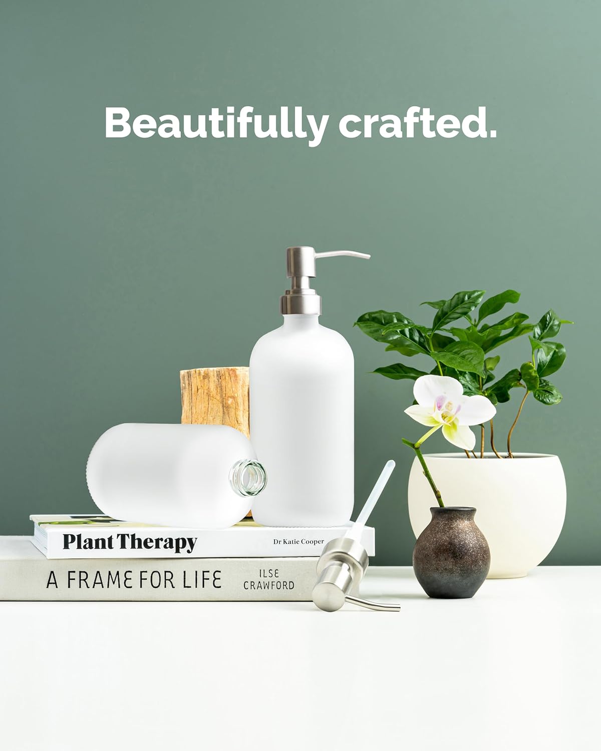 - PLEASE NOTE: These glass bottles have a semi-transparent matte finish, so COLORED SOAP MAY BE VISIBLE. For a clean, all-white look, we recommend using clear or light-colored soap.
