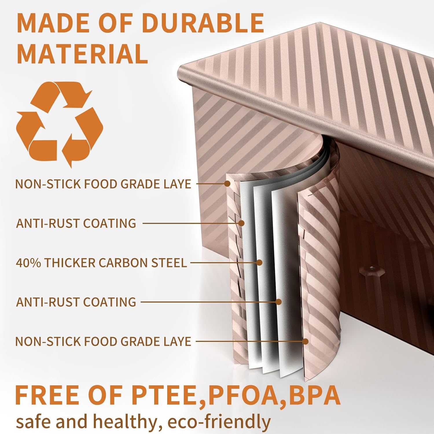 - SAFE MATERIAL - The baking pan made of carbon steel is sturdy and durable, heating evenly (capable of withstanding temperatures up to 428Β°F). It has excellent wear resistance, is non-stick, and easy to clean. The carbon steel material ensures that the toast is crispy on the outside and tender on the inside, while also ensuring healthier and safer food preparation