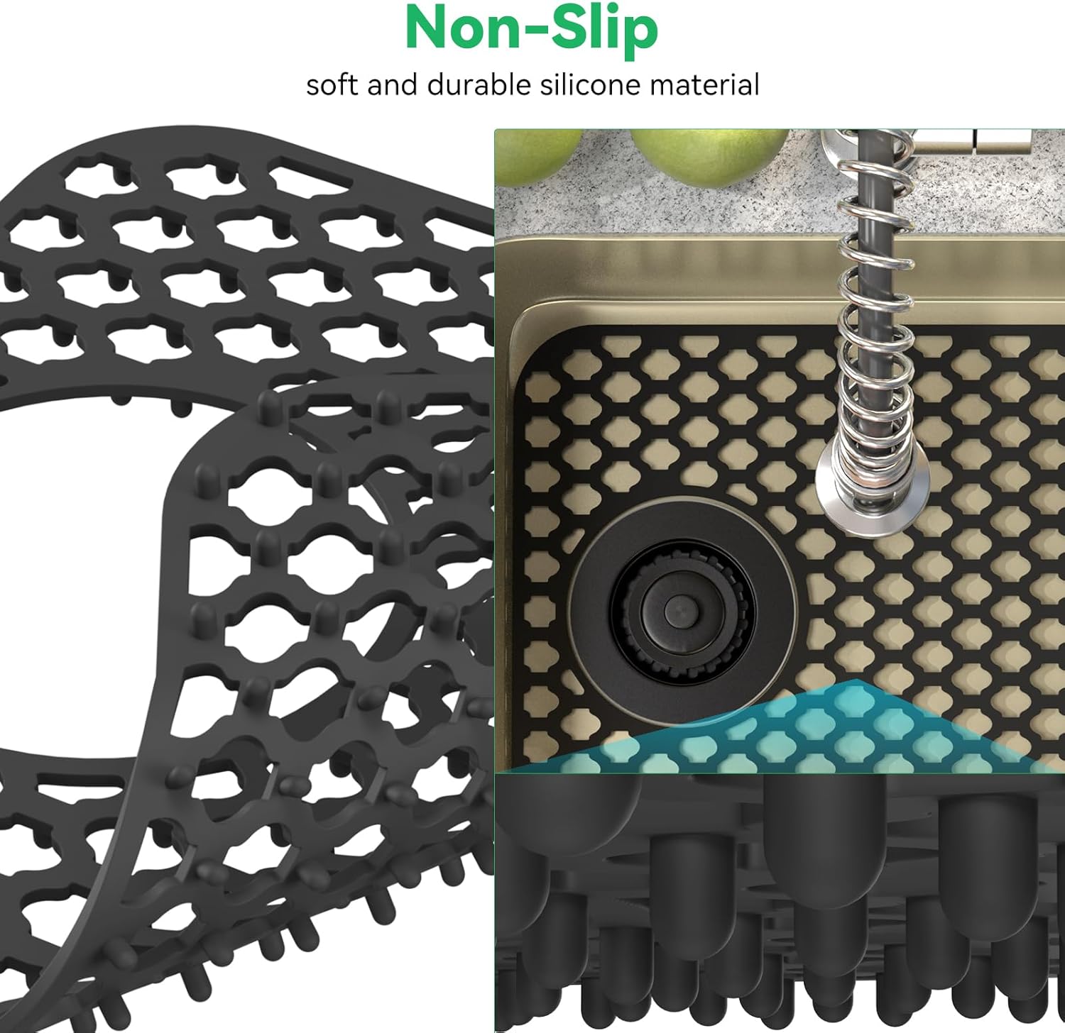 - 【Silicone Material】 Silicone Unlike metal sink mats, silicone sink protectors are super non-slip, preventing spoons and other silverware from scratching the sink, silicone sink mats prevent dishes from slipping down the drain, protecting your sink from clogging, silicone sink mats are suitable for most drain openings.