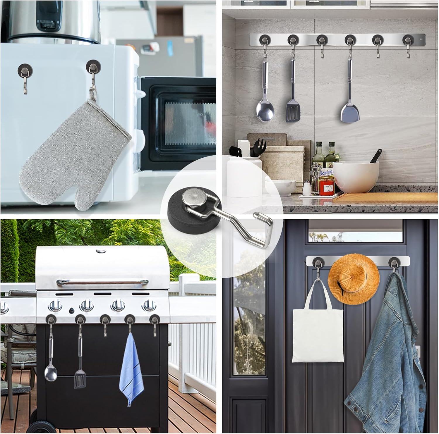 - Multipurpose: These rubber coated magnetic hooks can be used to secure various items in any place with iron or steel, and can be used to hang clothes, keys, hats, towels, kitchen supplies, tools in lockers, grills, refrigerators, doors, cruise ship cabins, etc