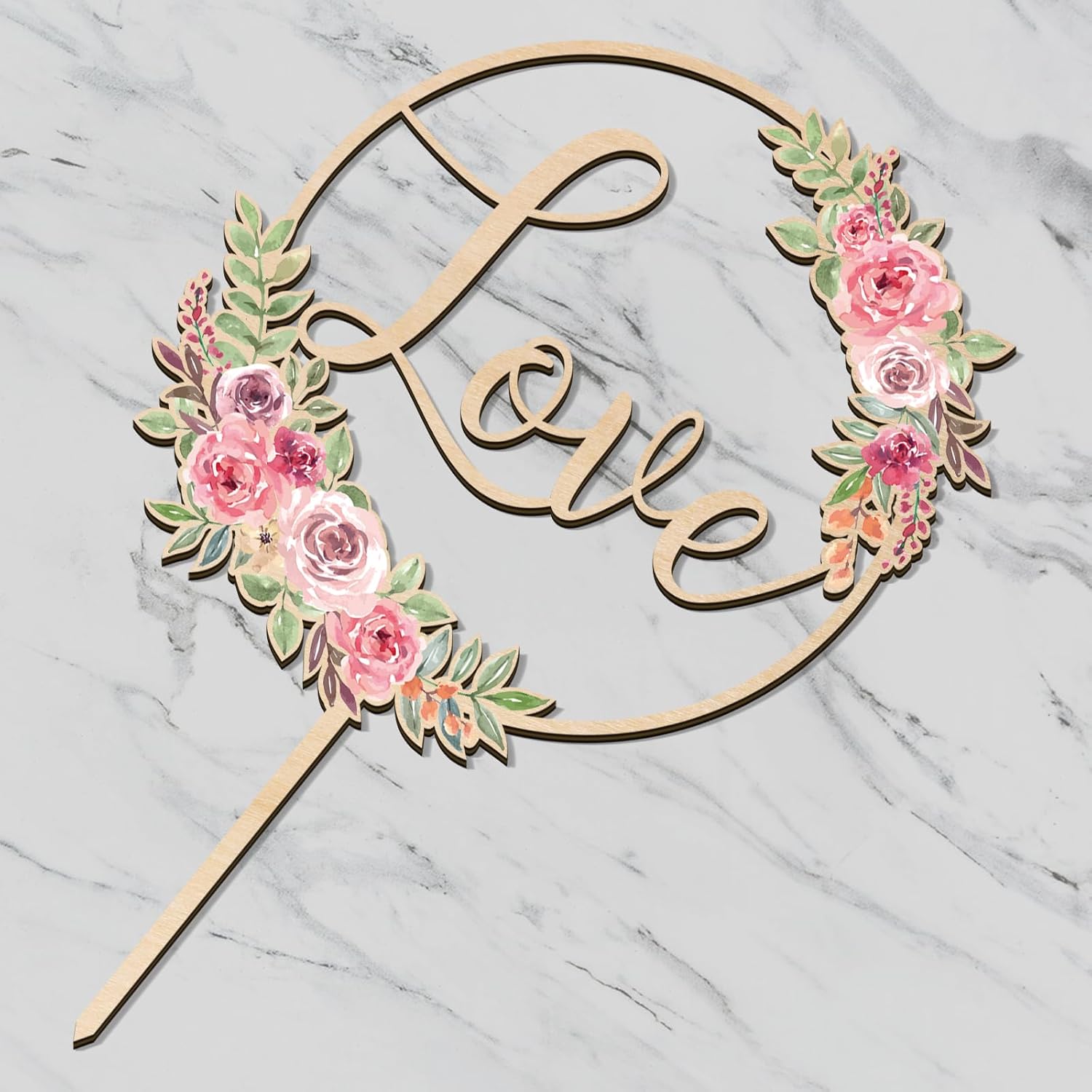 Love Wedding Cake Topper Floral Wedding Engagement Cake Decoration in Wood (Design 01)