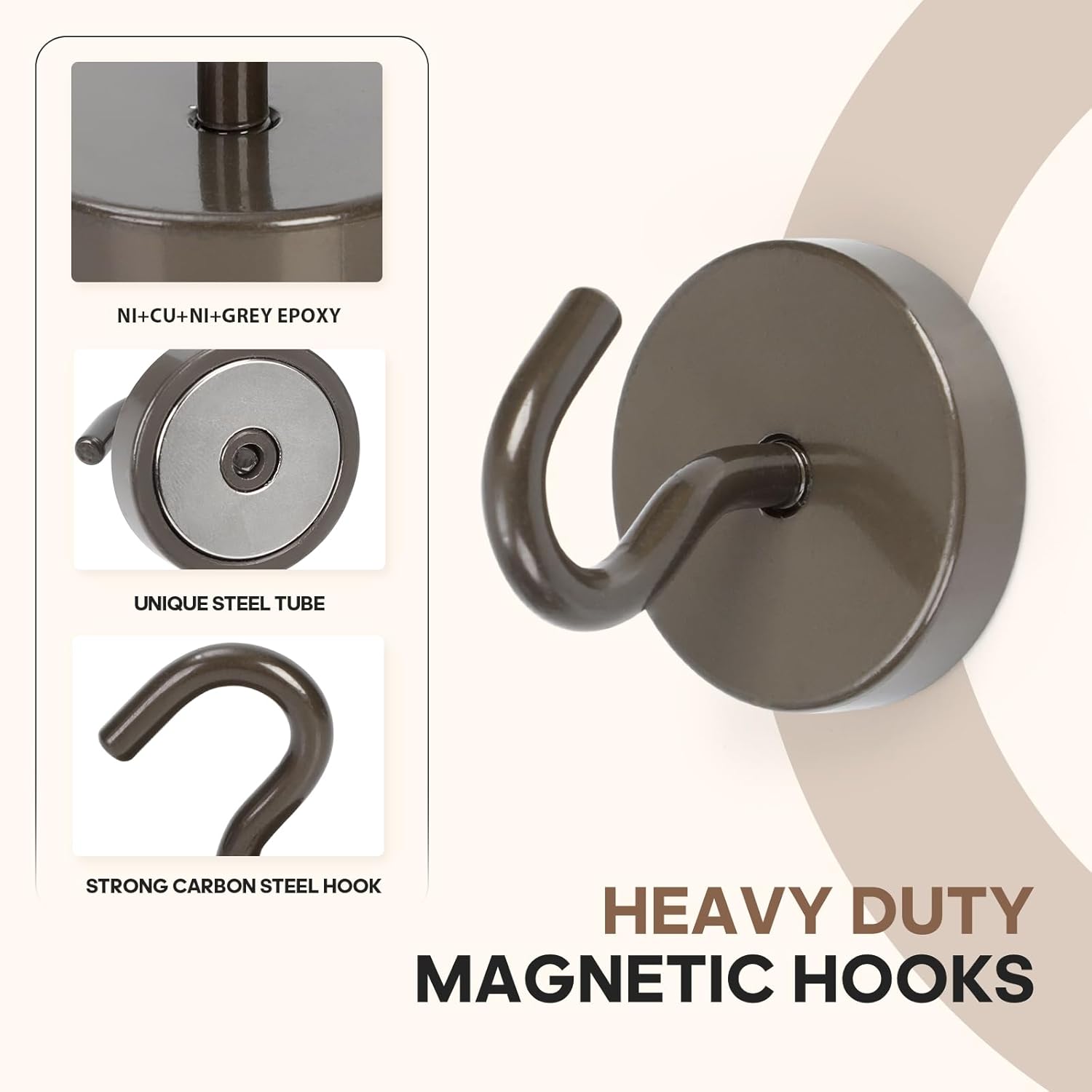 - ✔MAGIC STEEL TUBE DESIGN - Unique design of steel tube inside the base of magnetic hooks greatly increases the attractive force , especially on thin steel! It increase approximately 20% force comparing those none-tube magnets. it solves the problem of weak force on thin steel. Permanent magnetic hook with magic steel tube, strong magnetism lasts forever!