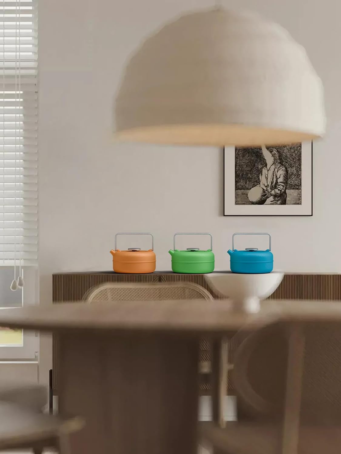 Toptier Teapot with Removable Infuser, Cast Iron Tea Kettle Stovetop Safe, Solid Geometry Cylinder Design Tea Pot Coated with Enameled Interior for 27 Ounce (800 ml), Blue
