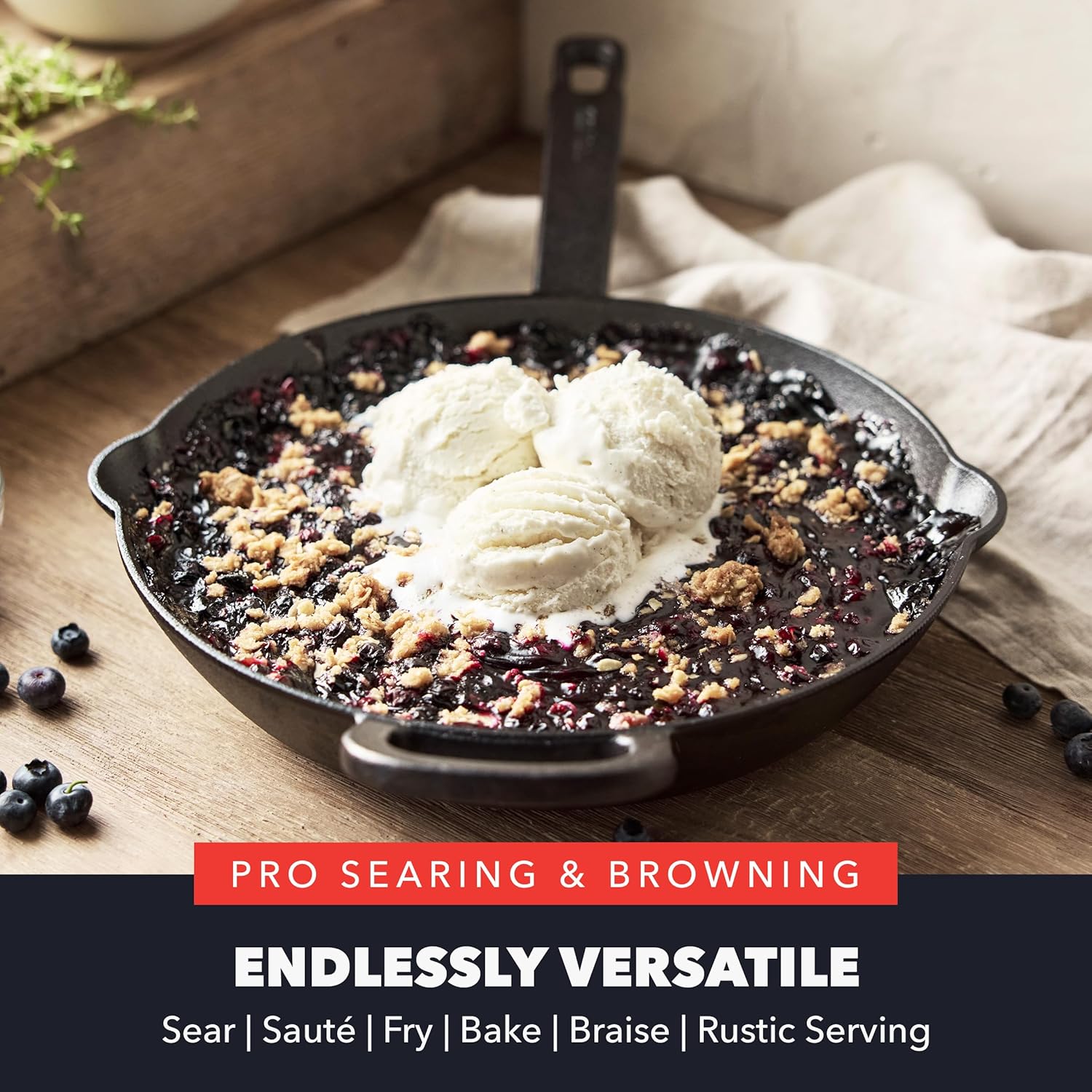 - PRO SEARING & BROWNING: Performs wherever you need it: stovetop, oven, grill, and open flame