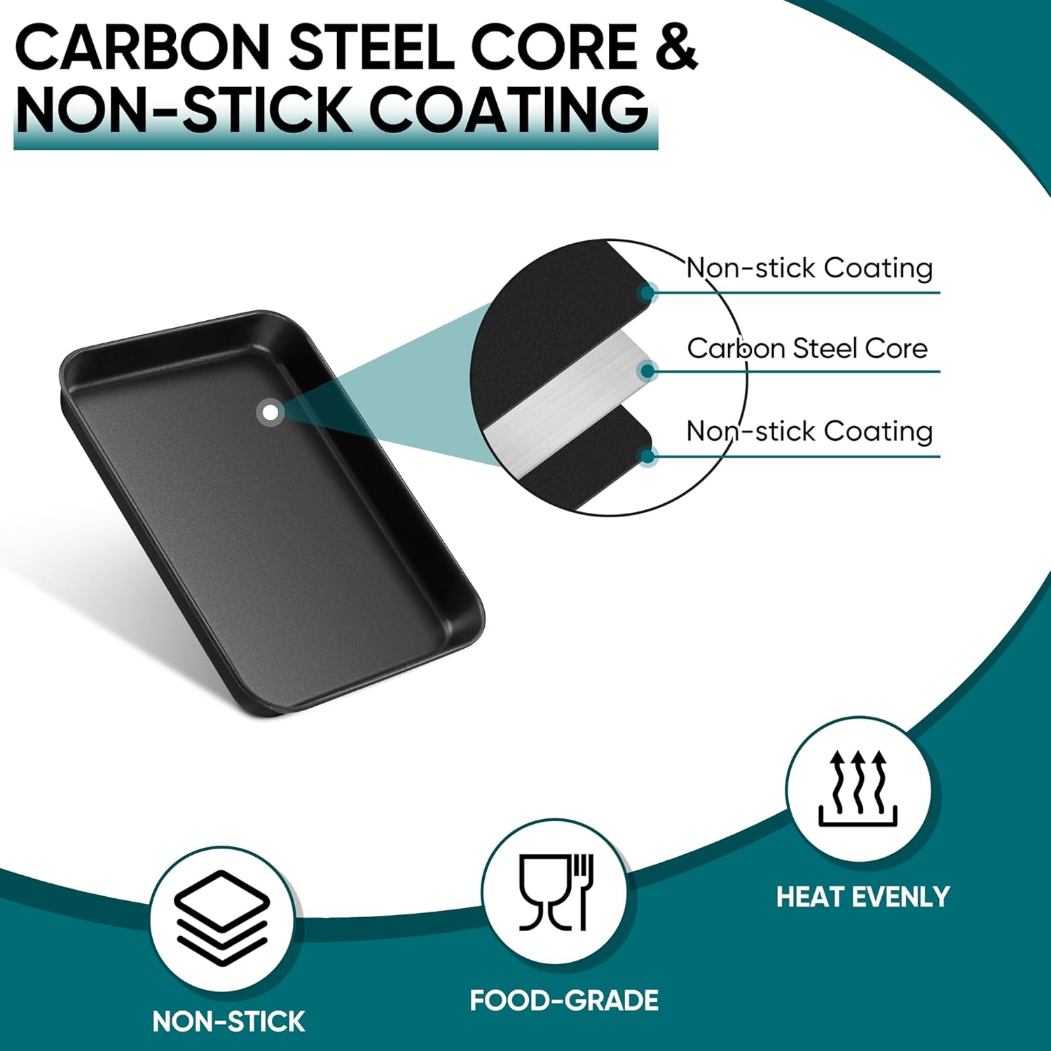 - MULTIPURPOSE SHEET PANS: Including 2 pans 10.5 x 8 x 1 inch, Suitable for most toaster ovens, The baking pan is the key to your family's daily baking needs, Such as baking egg tart, cookies, small pizza pie and meat,; 2 multi-purpose baking trays allow for flexible and efficient food preparation without waiting for the next round, Making your baking more efficient