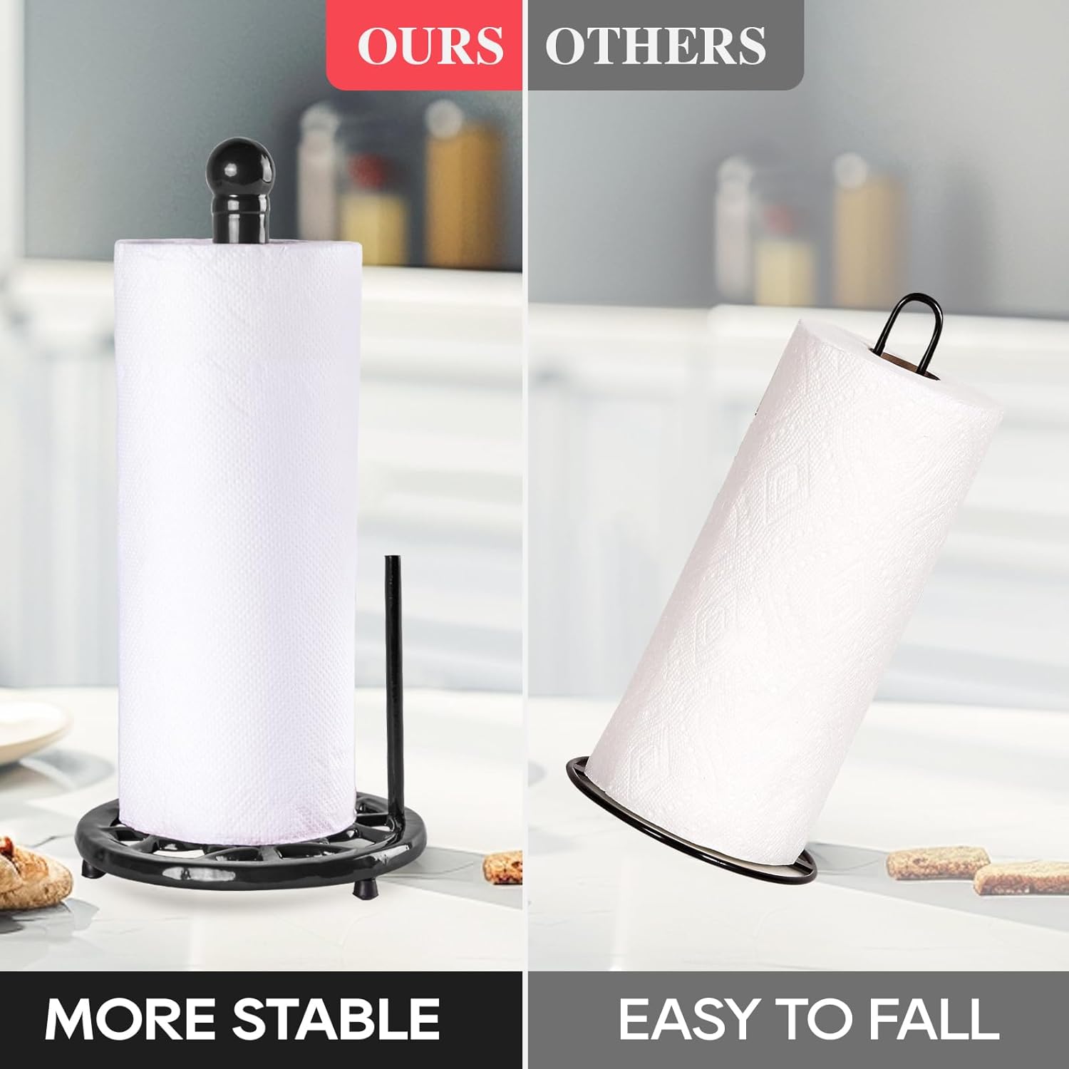 JOGREFUL Paper Towel Holder Stand, Cast Iron Kitchen Paper Towel Countertop Vintage Stand with Weighted-Base, Bathroom Organization for Family Standard Large Size Roll Paper, Classic Style, Black
