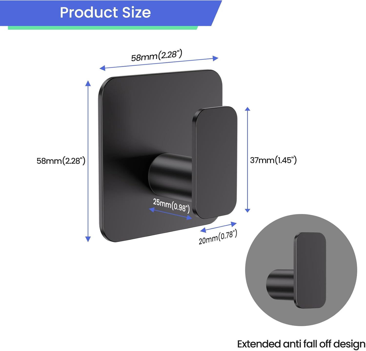 - 【Anti Fall Off Design - Hanging Safety without Worry】 The upper part of the adhesive hooks adopts 0.71 inch/1.8cm lengthened anti fall off design, hanging items do not fall, even if hanging thick coats that are easy to slip can also work well, solved the problem of hanging items falling behind.
