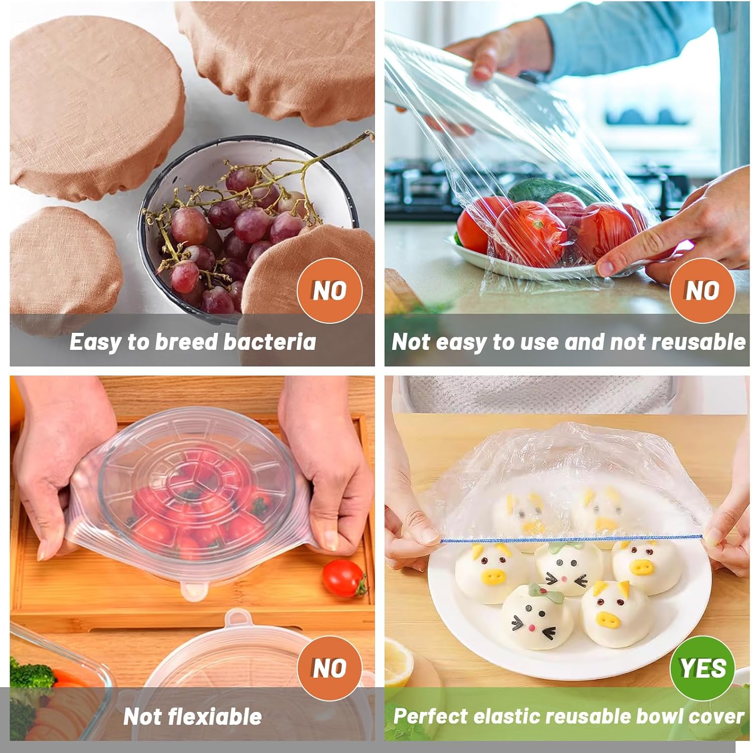 - Hermetically keeps food fresh: Plastic bowl covers helps keep food fresh without drying out in refrigerator