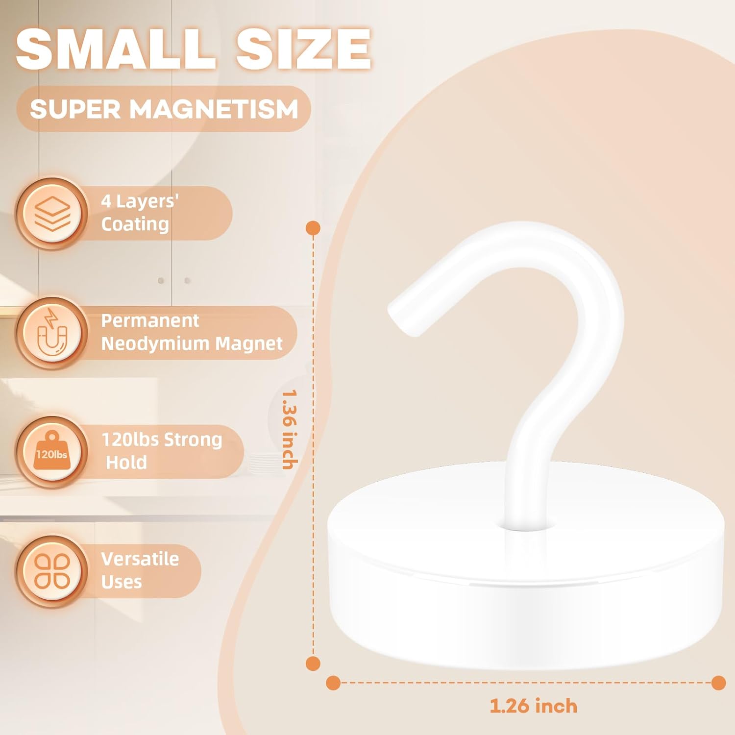 - ✔ VERSATILE USE- Neosmuk’s strong neodymium magnetic hooks were endowed with a strong capability for holding various items wherever there is iron or steel. This magnet hook is a perfect magnetic key holder. You can also hang your tools next to the toolbox with this magnetic hook. Our magnetic hooks are great for grill, pot, cup, utensils, and oven.